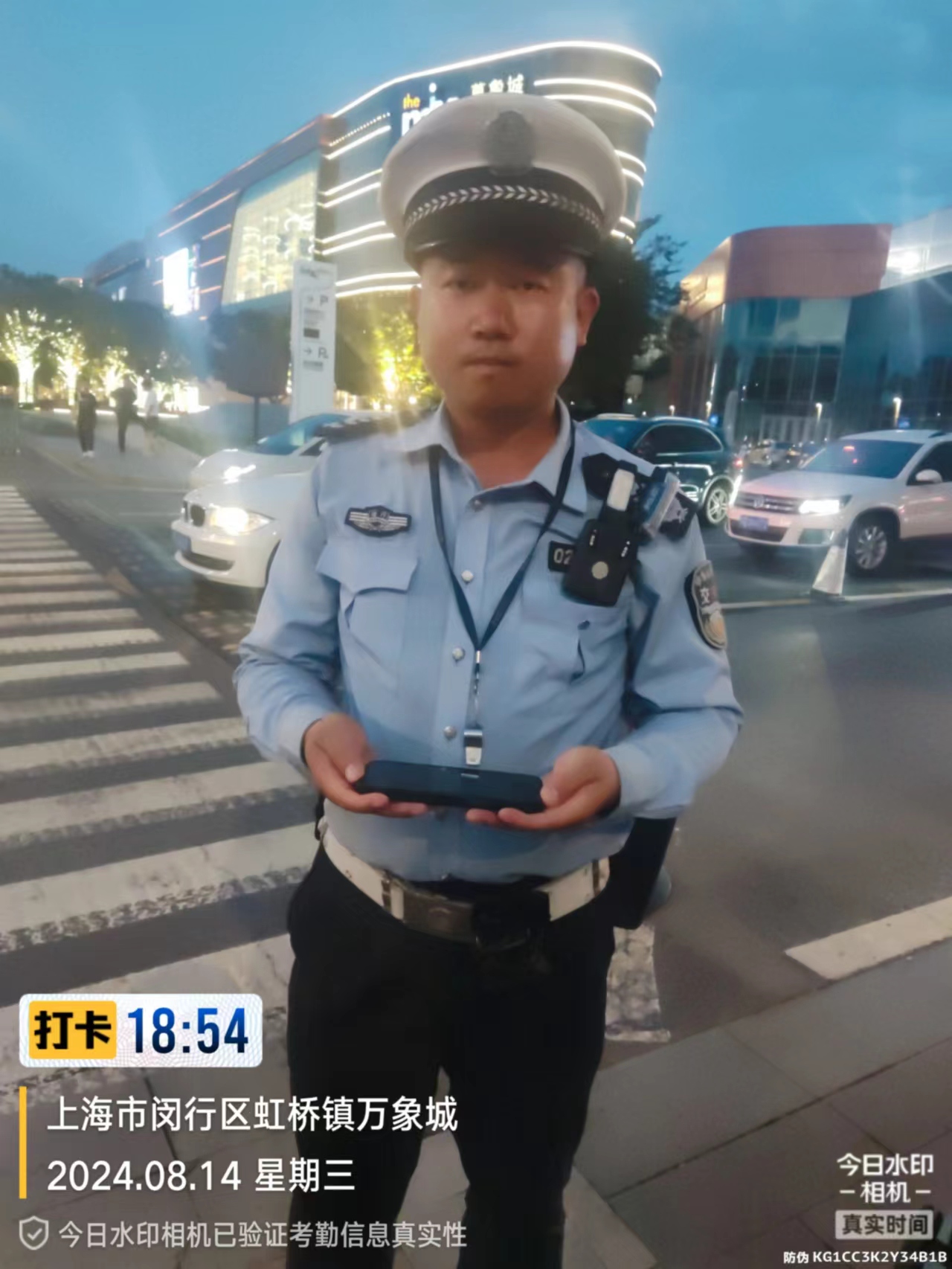 8月11日7:49,宗保公司駐閔行區(qū)虹橋交管輔助項目員工范成鋼在吳中路虹梅路路口執(zhí)勤時,撿到一部華為手機。