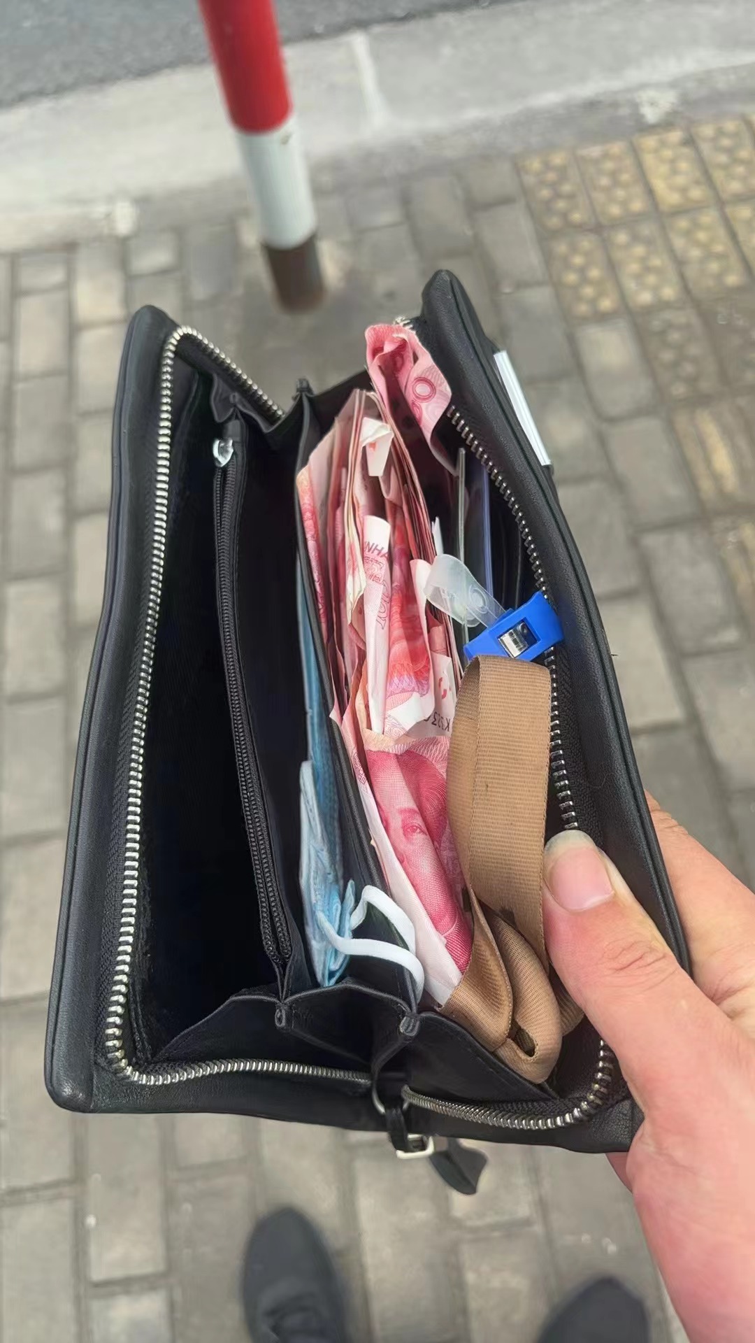 7月24日16:50,公司員工劉沐晨在元江路與嘉閔高架路路口值勤時,一位貨車駕駛員匆忙走過來,稱剛剛在路口的地上撿到一個裝有現(xiàn)金的黑色皮包,當(dāng)時皮包敞開著有的錢可能被風(fēng)吹走了,因自己要趕時間送貨請幫忙尋找失主,隨后留下一個聯(lián)系電話就離開了。