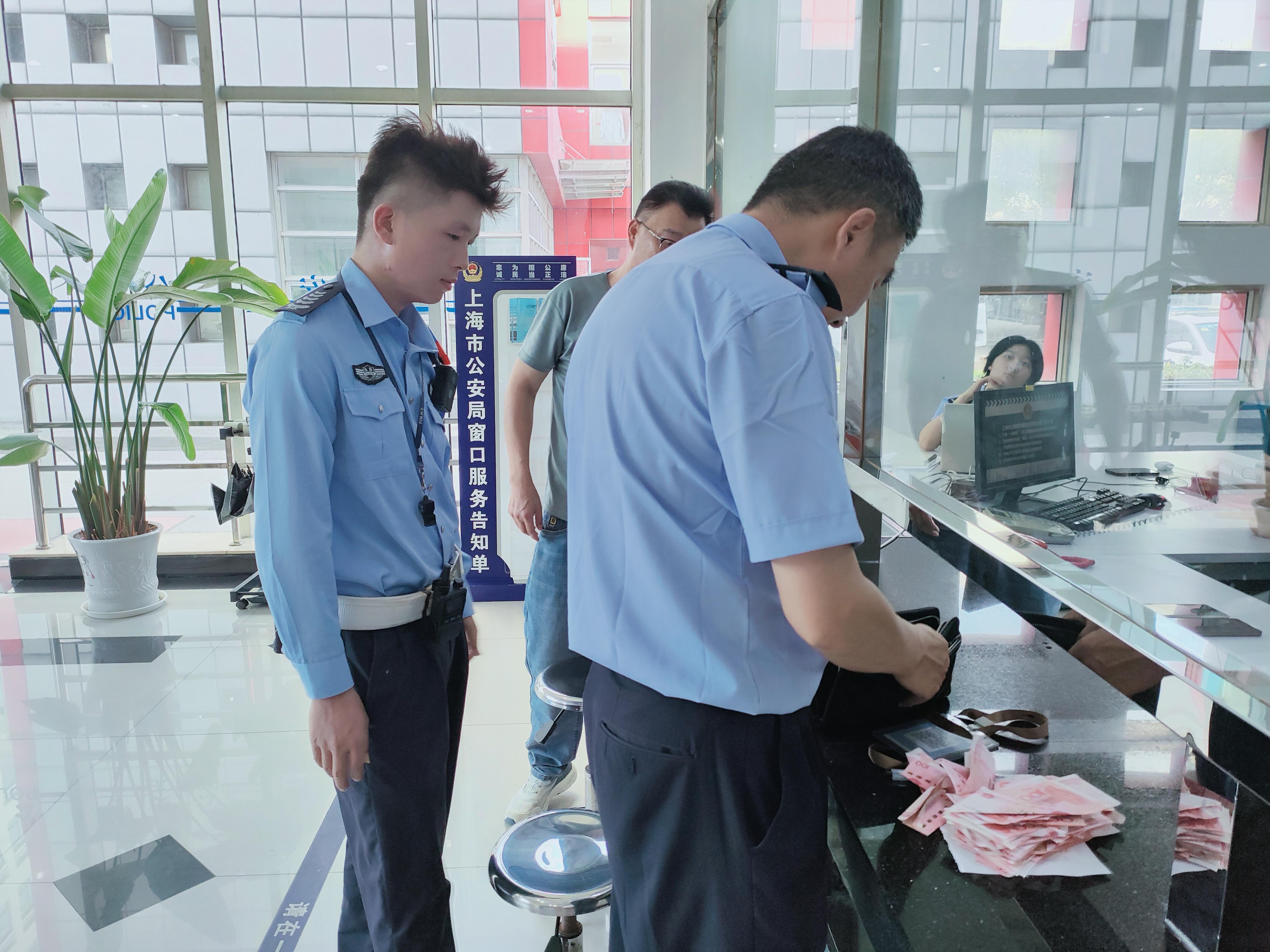 劉沐晨等了20分鐘左右,未見失主來尋找,便把黑色皮包、現(xiàn)金等物品一并送交到閔行區(qū)金都派出所。正當(dāng)劉沐晨在派出所窗口登記信息時,一名中年男子急匆匆地來報案,稱一個裝著大約九千到一萬塊錢的黑色皮包丟了。