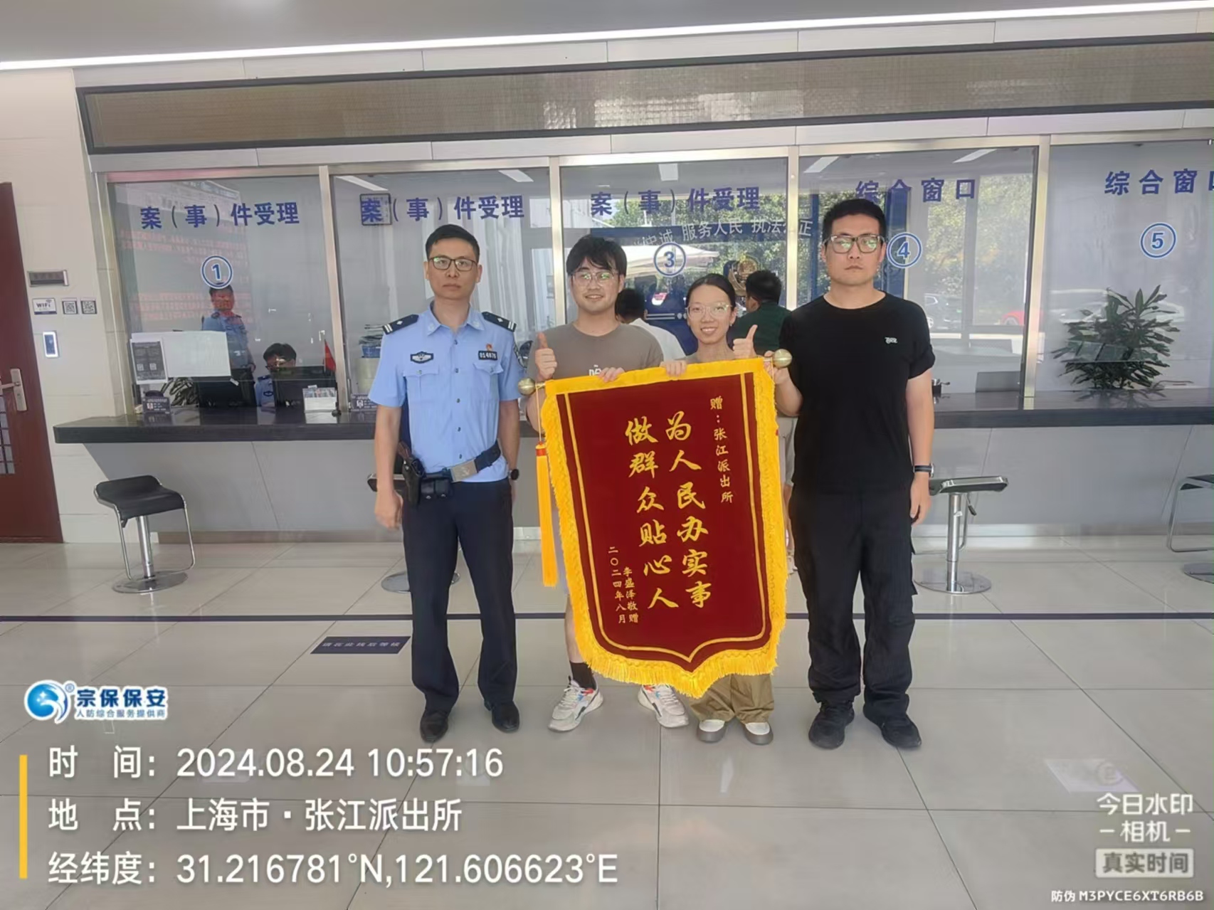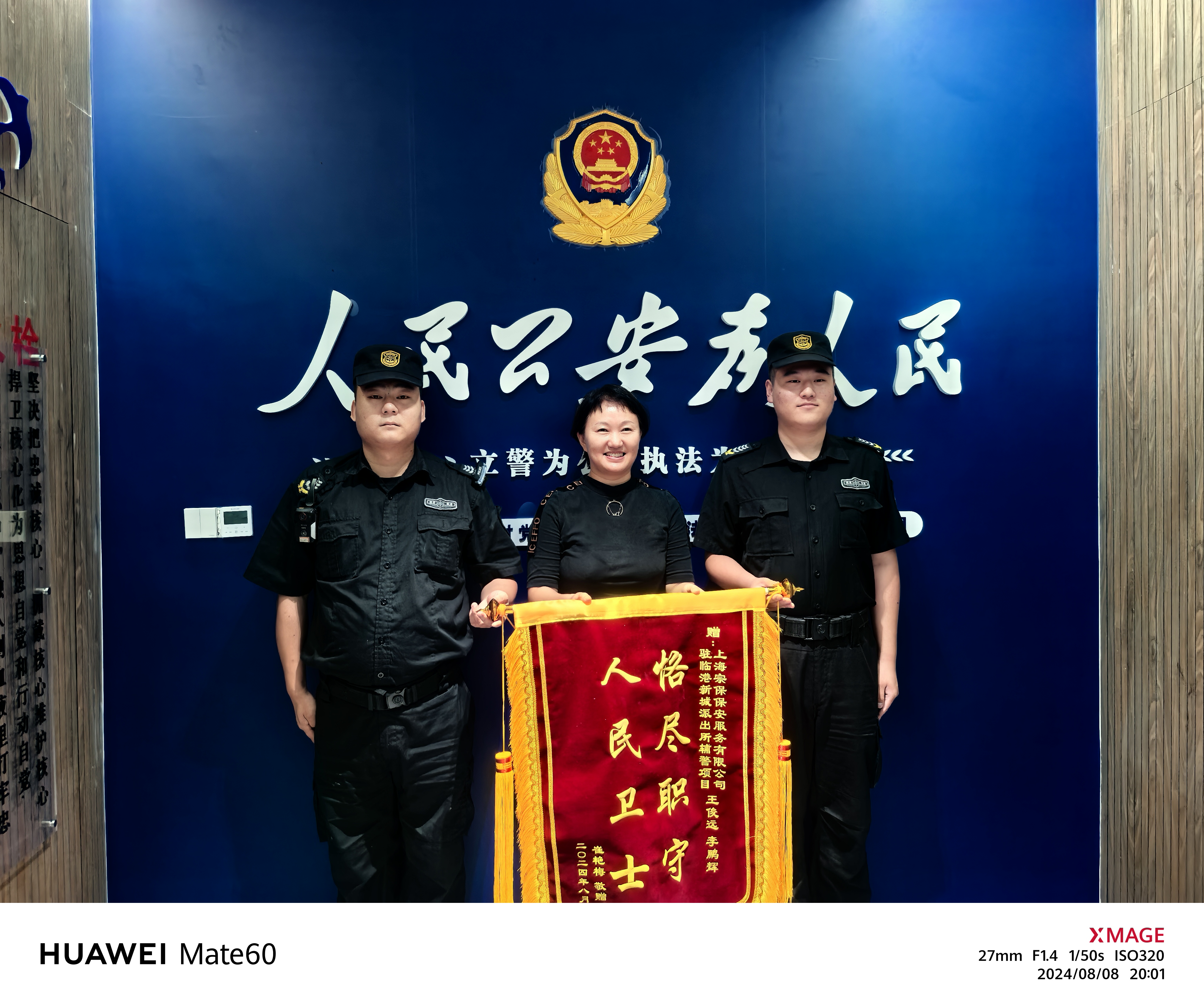8月24日,浦東新區(qū)公安分局張江派出所收到市民李先生贈送的一面繡有“為人民辦實事 做群眾貼心人”的錦旗,感謝宗保公司駐張江派出所項目員工董晉春和范利峰幫其找回丟失的電瓶車。
