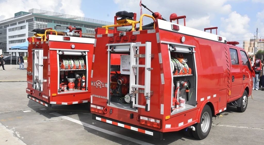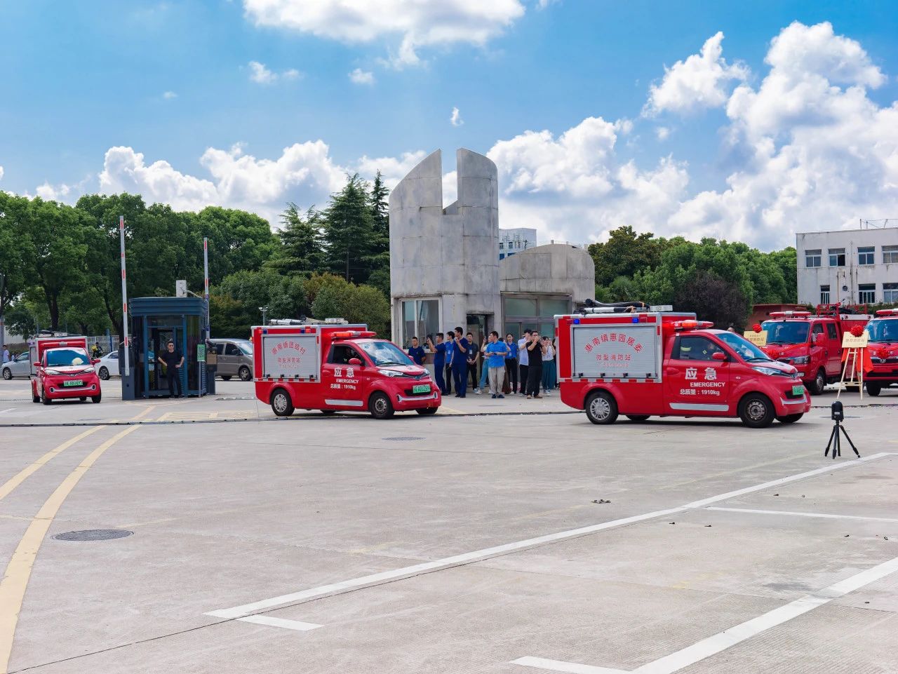 9:00綜合演練開始前,浦東新區(qū)消防救援支隊支隊長姜亦山、副支隊長吳新、惠南鎮(zhèn)黨委書記江臻宇、黨委副書記、鎮(zhèn)長楊揚共同為兩個微型消防站揭牌,隨后領(lǐng)導們觀看了微型消防站配置的消防車輛和滅火救援器材展示。