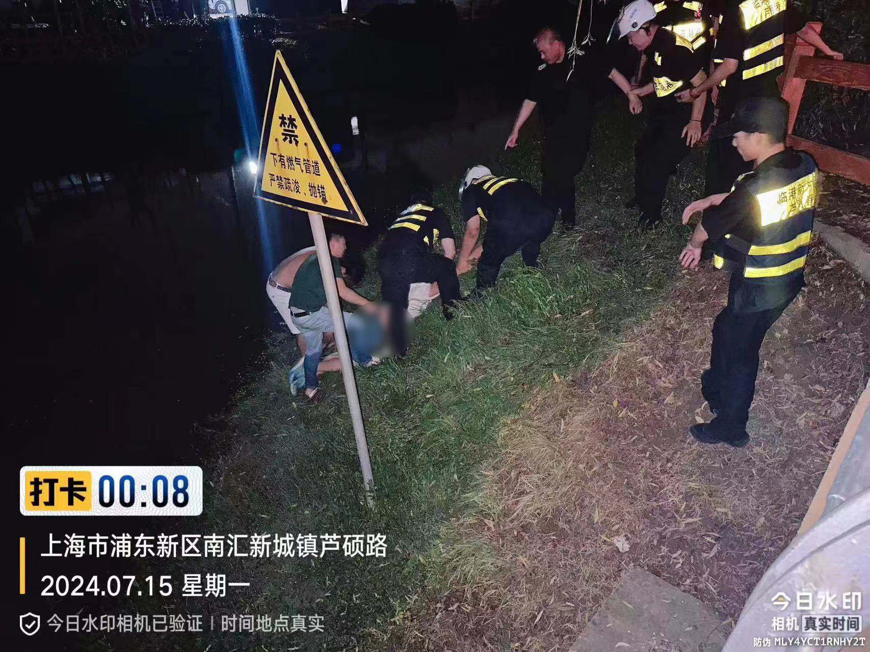 7月14日零時(shí),宗保公司員工管旭峰駕駛巡邏車經(jīng)過(guò)蘆碩路出潮樂(lè)路東約100米時(shí),發(fā)現(xiàn)多人在河道邊發(fā)生爭(zhēng)執(zhí)。正欲上前詢問(wèn)情況時(shí),一名男孩突然跳入河中,情況緊急,管旭鋒立即用對(duì)講機(jī)呼叫附近巡邏同事前來(lái)支援。