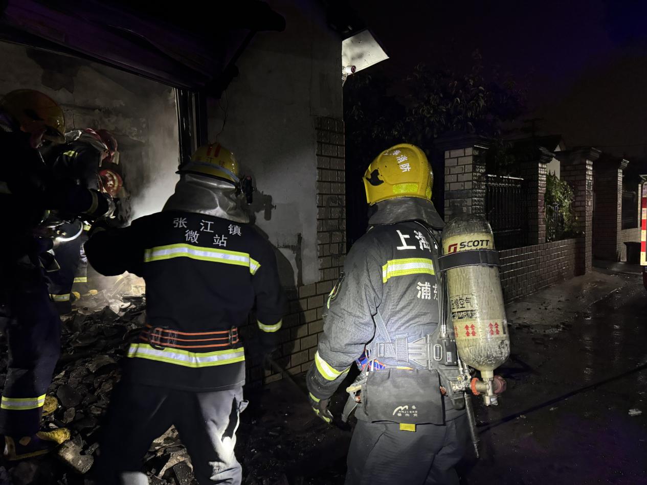 兩支社區(qū)微型消防站隊伍很快趕到現(xiàn)場,與先期到達的張江消防救援站、唐鎮(zhèn)消防救援站的8輛消防車協(xié)同作戰(zhàn),全力實施撲救。4:18,現(xiàn)場火勢被完全控制。