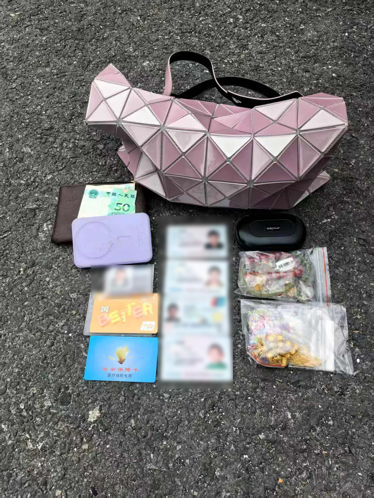 2月23日12:15 ,宗保公司駐浦東新區(qū)張江派出所輔助項目員工趙天航在益江路盛夏路附近巡邏時,撿到一個手提包,內有3張身份證、2張社??ā?0元現(xiàn)金及若干飾品等物品。