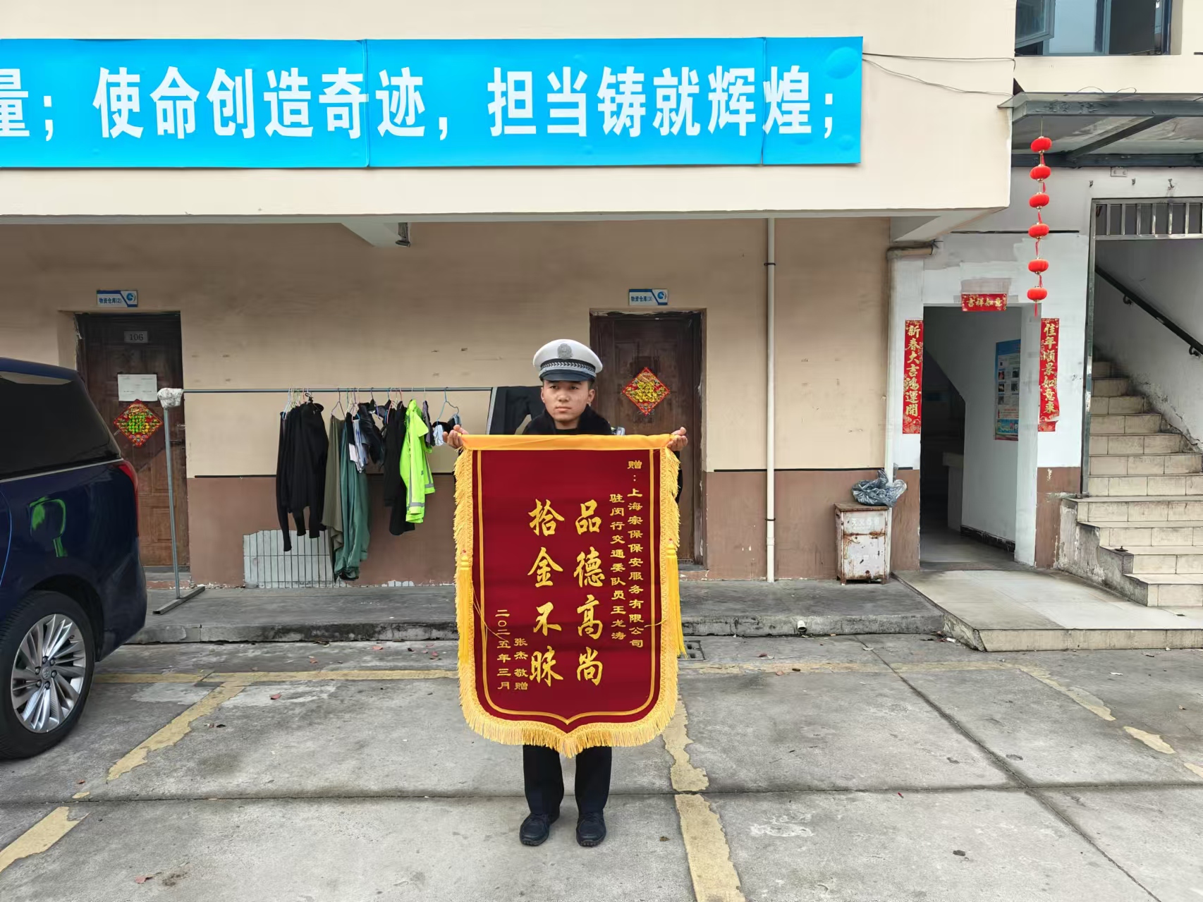 01宗保公司駐閔行區(qū)交通委項(xiàng)目員工王龍濤拾金不昧,獲市民錦旗致謝