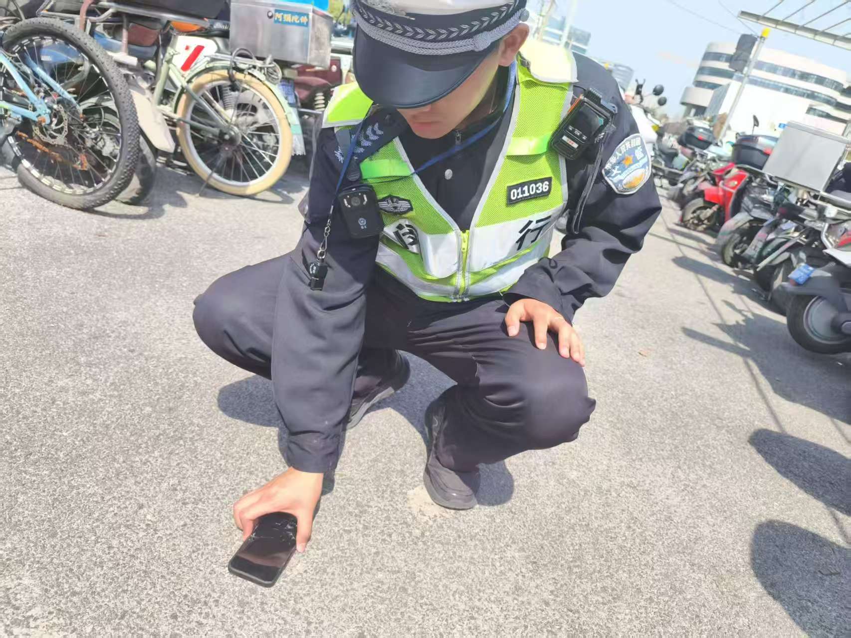 大約過了五六分鐘,一位騎著電瓶車的女子神色焦急地趕到現(xiàn)場,左顧右盼地好像尋找物品。王祥見狀主動(dòng)上前詢問,女子表示自己的手機(jī)剛剛不慎丟失了。