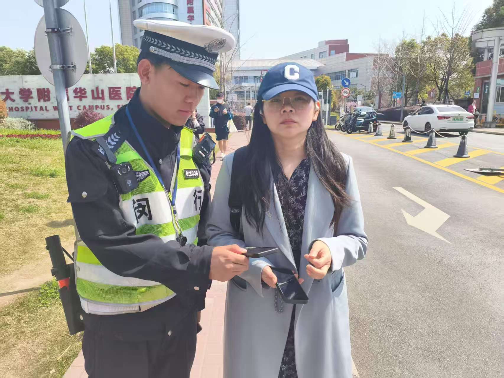 大約30分鐘后,一名女子急匆匆地趕到路口尋找手機(jī)。通過女子成功解鎖手機(jī)鎖屏密碼,關(guān)嘉壕確認(rèn)了她的身份,便將手機(jī)交還給了她。女子拿到手機(jī)后,對(duì)關(guān)嘉壕拾金不昧的行為連連稱贊,并表示由衷的感謝。
