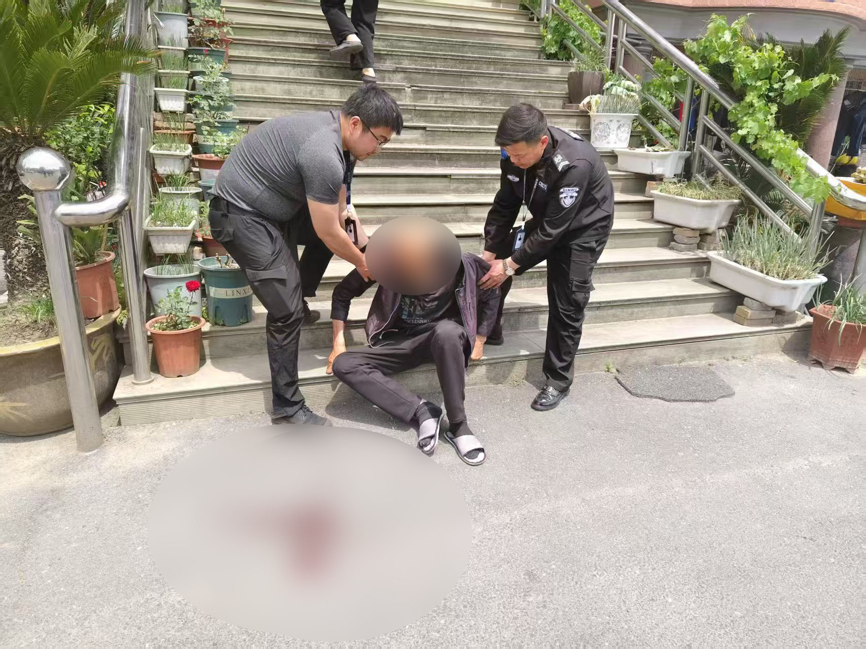 面對(duì)突發(fā)狀況,三人立即分工協(xié)作:溫賢和徐友福小心翼翼地將老人攙扶至附近臺(tái)階休息,并輕聲安撫,穩(wěn)定其情緒;孫啟晨則第一時(shí)間撥打120急救電話,同時(shí)積極尋找知情鄰居,成功聯(lián)系上老人家屬,及時(shí)告知現(xiàn)場情況。