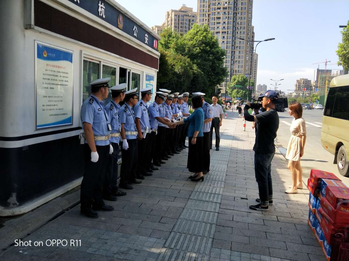 今天下午區(qū)政協(xié)主席阮文靜,區(qū)人大副主任白美玉,副區(qū)長(zhǎng)葛建偉,區(qū)公安分局副局長(zhǎng)徐義峰冒著酷暑來(lái)我閑林街道進(jìn)行“送清涼”慰問(wèn)活動(dòng)。 盛夏時(shí)節(jié),驕陽(yáng)似火,區(qū)政協(xié)主席阮文靜,區(qū)人大副主任白美玉,副區(qū)長(zhǎng)葛建偉,區(qū)公安分局副局長(zhǎng)徐義峰對(duì)頂烈日、戰(zhàn)高溫,始終堅(jiān)持在一線的閑林交通安全工作站的隊(duì)員進(jìn)行了親切慰問(wèn),并對(duì)隊(duì)員們?yōu)樯鐣?huì)做出的貢獻(xiàn)表示感謝,并一一握手親切說(shuō)到“同志們辛苦了”!區(qū)領(lǐng)導(dǎo)對(duì)閑林交通安全工作站隊(duì)員的工作也進(jìn)行了充分的肯定和認(rèn)可,同時(shí)也再三囑咐工作站的隊(duì)員在工作中注意避暑防暑
