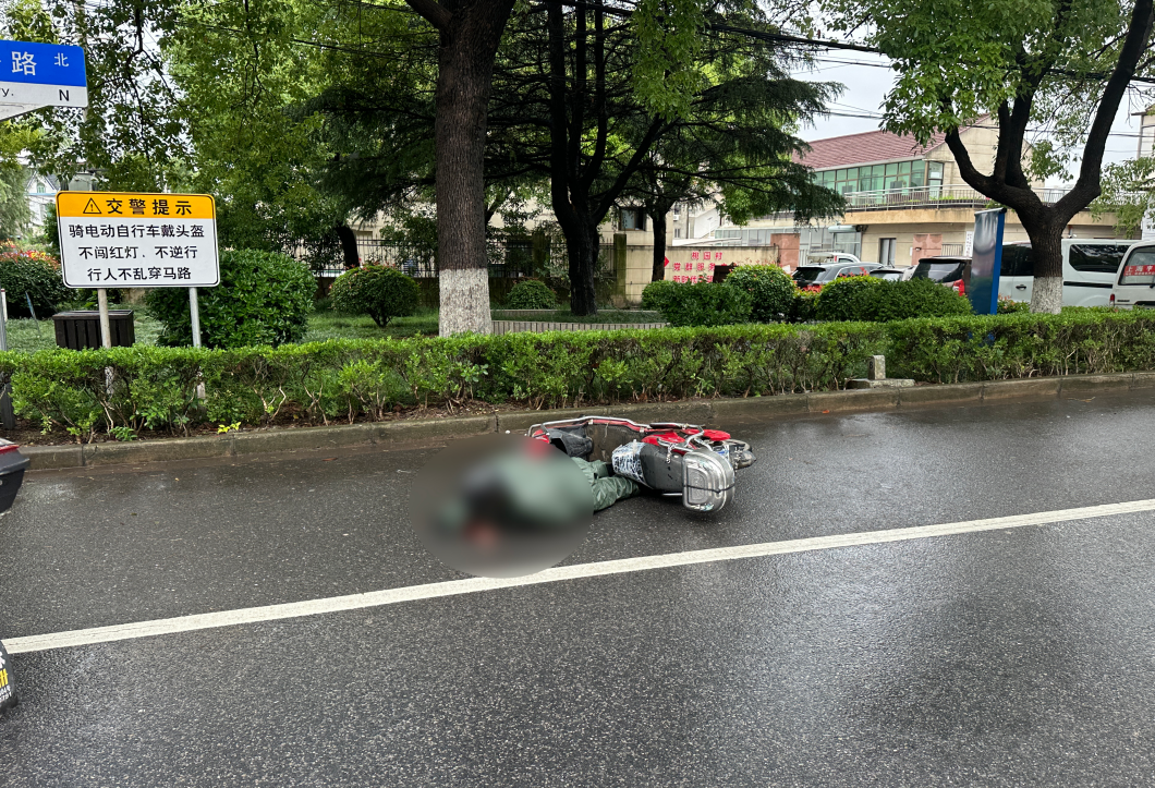 當日9:35,魏正斌在老蘆公路新鵬路交叉口巡查時,發(fā)現(xiàn)一位老人騎電動車不慎摔倒在地,臉部受傷,鮮血直流,沉重的電動車還壓在老人的身上,情況十分危急。