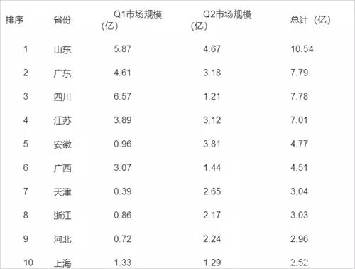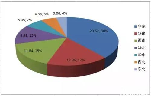 從市場區(qū)域來看,2018年上半年,我國城市智能交通千萬項目市場主要集中在我國華東地區(qū)(如圖2所示)。市場區(qū)域排在前十的省及直轄市依次包括山東、廣東、四川、江蘇、安徽、廣西、天津、浙江、河北、上海,其中華東地區(qū)就有5個省及直轄市入榜,前十市場區(qū)域中華東地區(qū)市場總計千萬項目數(shù)185項,市場規(guī)模總計約28億,約占2018年上半年我國城市智能交通千萬項目市場規(guī)模的35.4%。