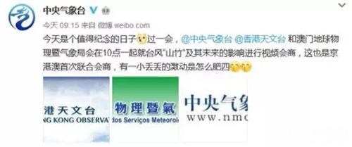 9月13日,中央氣象臺(tái)宣布,與香港天文臺(tái)和澳門(mén)地球物理暨氣象局一起就臺(tái)風(fēng)山竹及其未來(lái)的影響進(jìn)行視頻會(huì)商,這也是中國(guó)氣象歷史上第一次三地聯(lián)合會(huì)商,可見(jiàn)臺(tái)風(fēng)山竹的重要性。