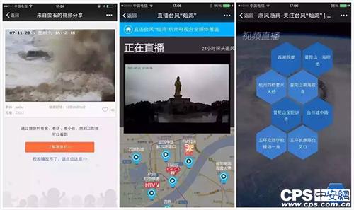 在2015年臺風(fēng)“燦鴻”侵?jǐn)_期間,螢石合作央視進(jìn)行臺風(fēng)直播。據(jù)悉,螢石充分調(diào)動其在臺風(fēng)區(qū)中的監(jiān)控點位,全天候直擊臺風(fēng)登陸前后24小時的災(zāi)區(qū)實景。為有需要的個人及部門提供了實時更新的視頻應(yīng)用,為災(zāi)后救援提供了最直觀的信息來源。