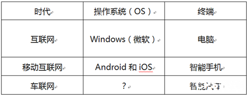 BAT要想對(duì)標(biāo)世界互聯(lián)網(wǎng)霸主蘋果、谷歌、微軟,的確還缺少底層的操作系統(tǒng)OS?;ヂ?lián)網(wǎng)行業(yè)發(fā)展的規(guī)律證明,凡是能夠成為操作系統(tǒng)的公司,就會(huì)成為生態(tài)鏈的頂端。汽車是筆記本電腦、智能手機(jī)之后的又一可移動(dòng)智能終端,要想分享到車聯(lián)網(wǎng)的紅利,必須要打造一個(gè)通用型智能汽車的操作系統(tǒng),俗稱為“汽車的智能大腦”。