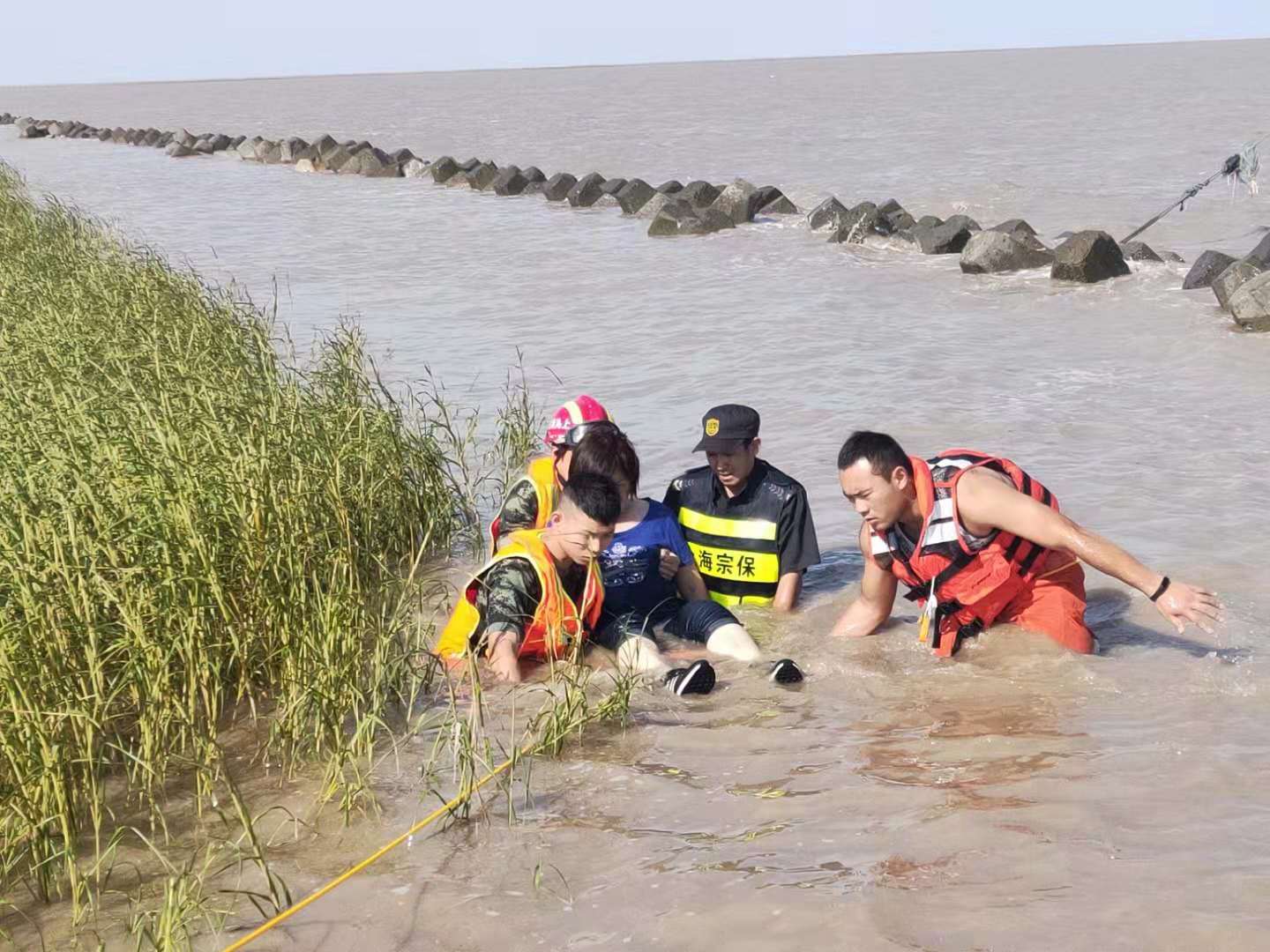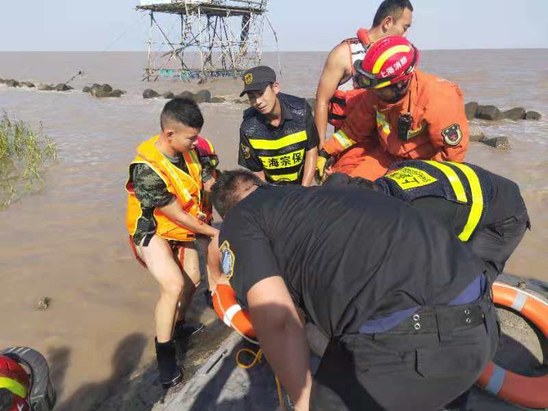 國慶假日,上海臨港,游人如織。海邊的觀海嘴公園風(fēng)景如畫,更是游樂的好去處。不少游客不顧提醒、勸阻,擅自翻躍海堤,到海灘上嬉戲。這兩名青年男女甚至到更遠(yuǎn)的礁石上玩耍,女游客因腿部扭傷,在漲潮時(shí)無法及時(shí)撤離,兩人被海水困住了。