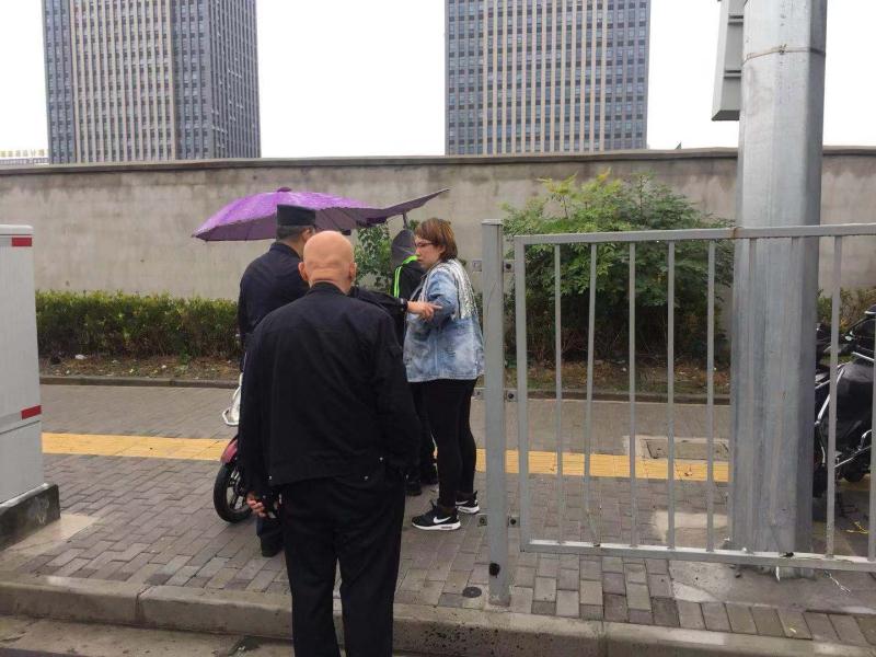 當(dāng)天上午8:00 左右,宗保公司駐北蔡市容隊員陳明、陳碧友、馬亞輝、譚星在巡邏至滬南路御橋路口西北角時,發(fā)現(xiàn)在非機動車道當(dāng)中,有輛電瓶車倒在那里,旁邊還躺著位女子。倒地女子毫無意識,伴有抽搐及口吐白沫現(xiàn)象。