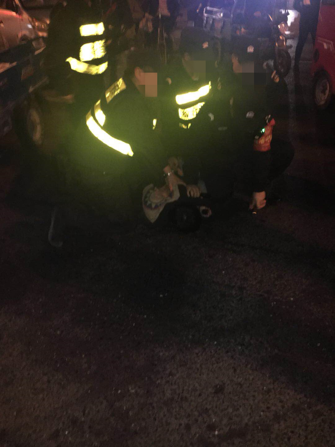 民警到達(dá)現(xiàn)場后,在調(diào)查期間,該駕駛員突然駕駛?cè)嗆囂右?。我們特勤?duì)員在民警的指令下,立即控制住車輛和人員以后。肇事司機(jī)仍拒不配合,并試圖二次逃逸。民警對其噴射辣椒水并制服。隨后,進(jìn)行酒精測試,該駕駛員屬于醉駕。