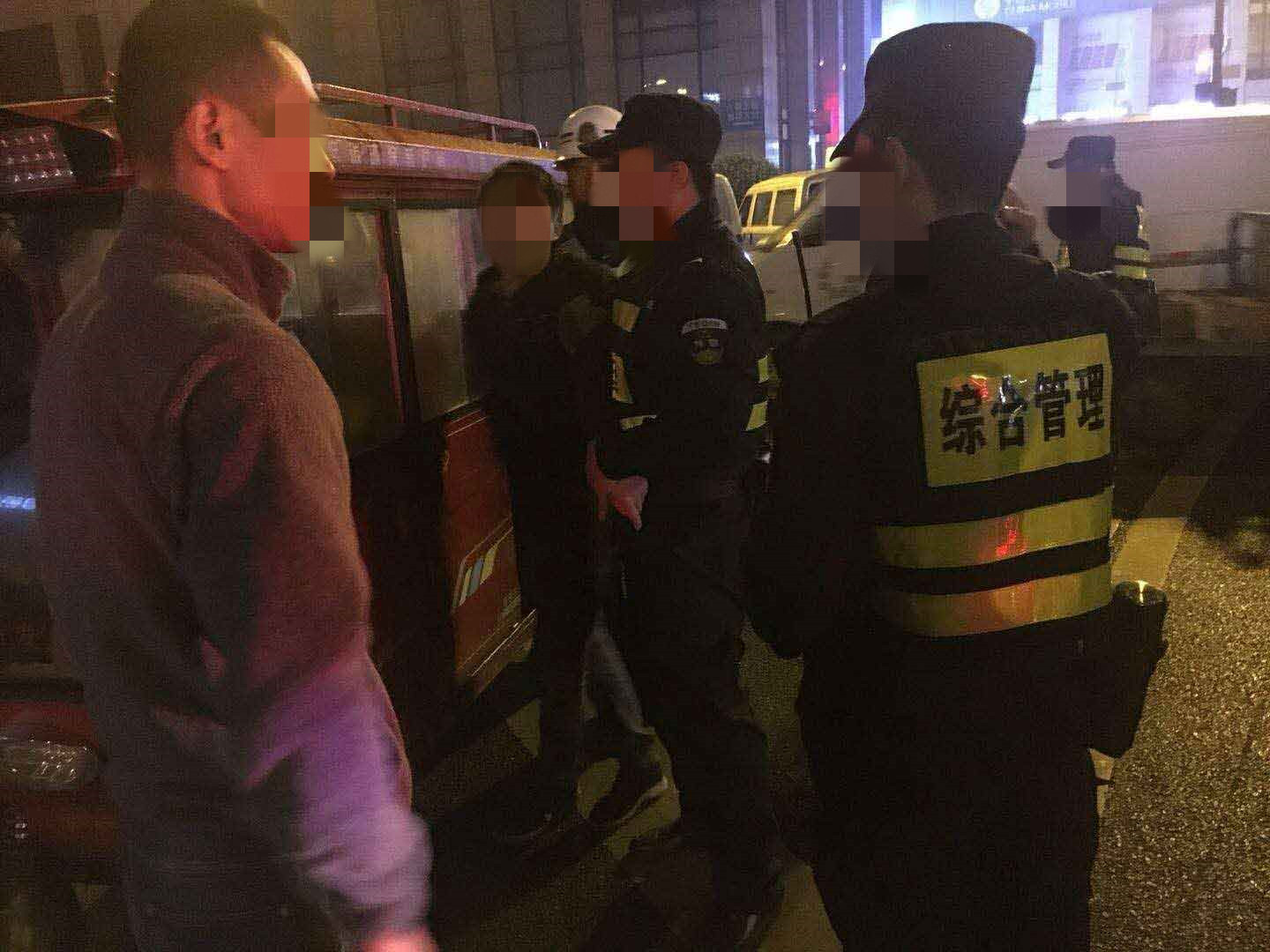 凌晨04:05,一輛機(jī)動車和一輛非載客三輪車發(fā)生刮擦,造成道路擁堵。良渚項(xiàng)目隊(duì)長張耒林立即報(bào)告值班民警,并帶領(lǐng)隊(duì)員趕到現(xiàn)場,一方面維護(hù)現(xiàn)場秩序,另一方面對擁堵路段進(jìn)行車輛疏導(dǎo)。當(dāng)時,肇事三輪車駕駛員滿身酒氣,不斷地去拉扯和辱罵機(jī)動車駕駛員,對勸阻的特保隊(duì)員同樣辱罵、推搓,并語言威脅。