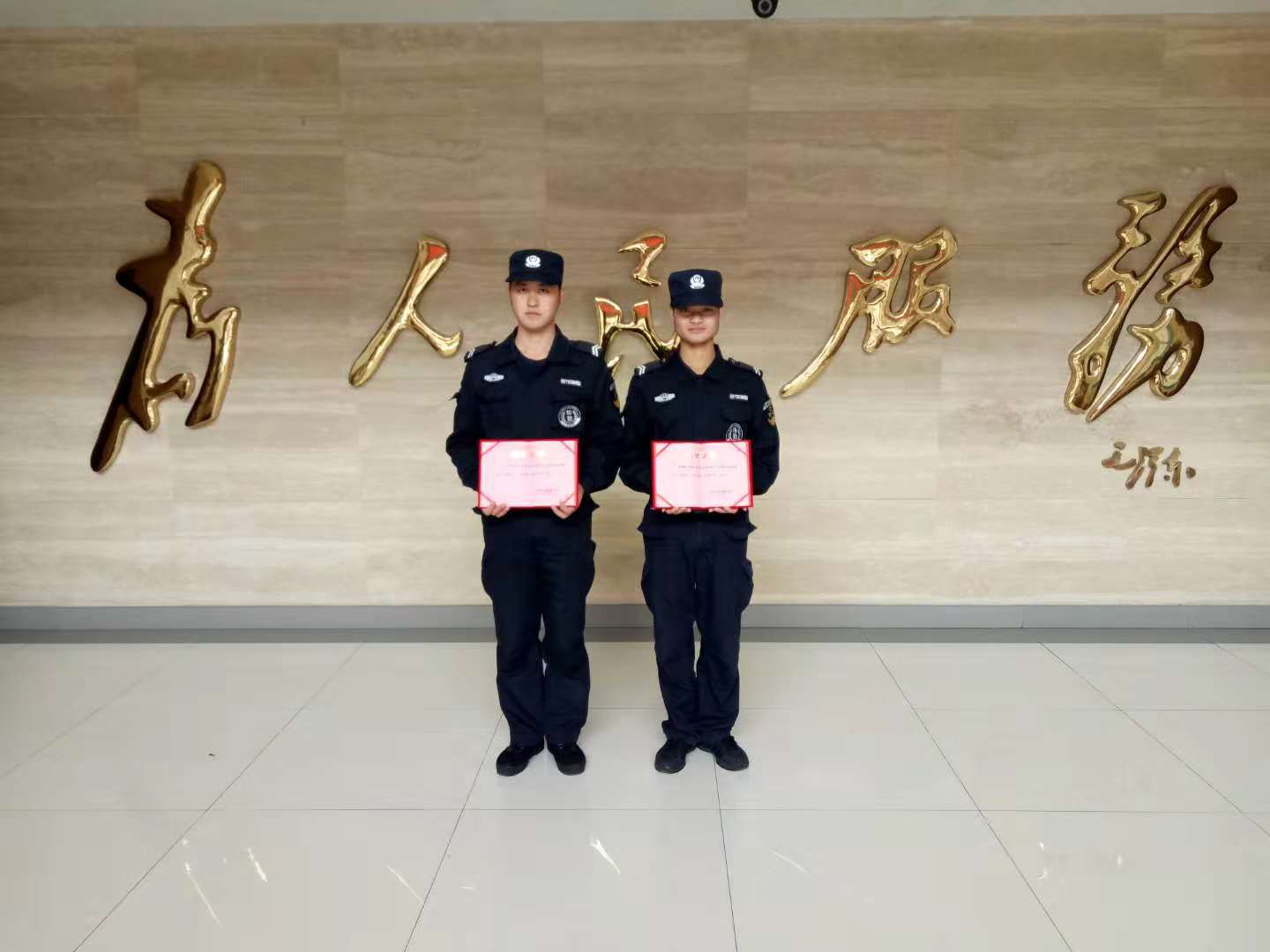 11月20日下午,民泰(宗保)五常項目特保隊員張小龍和潘森林拿著優(yōu)秀學員證書,激動萬分。