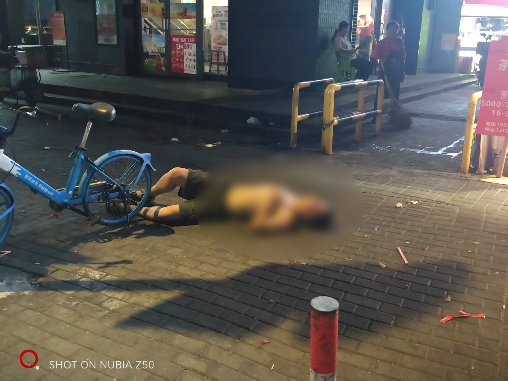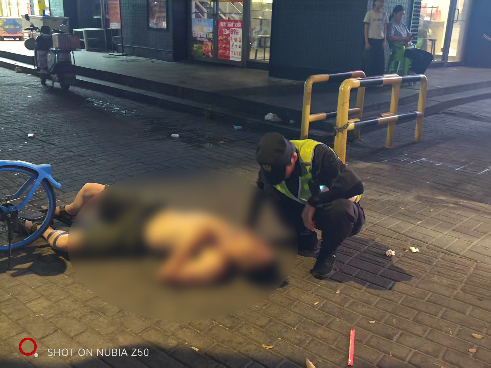 當日凌晨1:00左右,公司員工孫亞鋒和徐英浩巡邏至周泰路瑞建路路口時,發(fā)現一名男子赤裸著上身躺在地上,便趕緊上前察看。