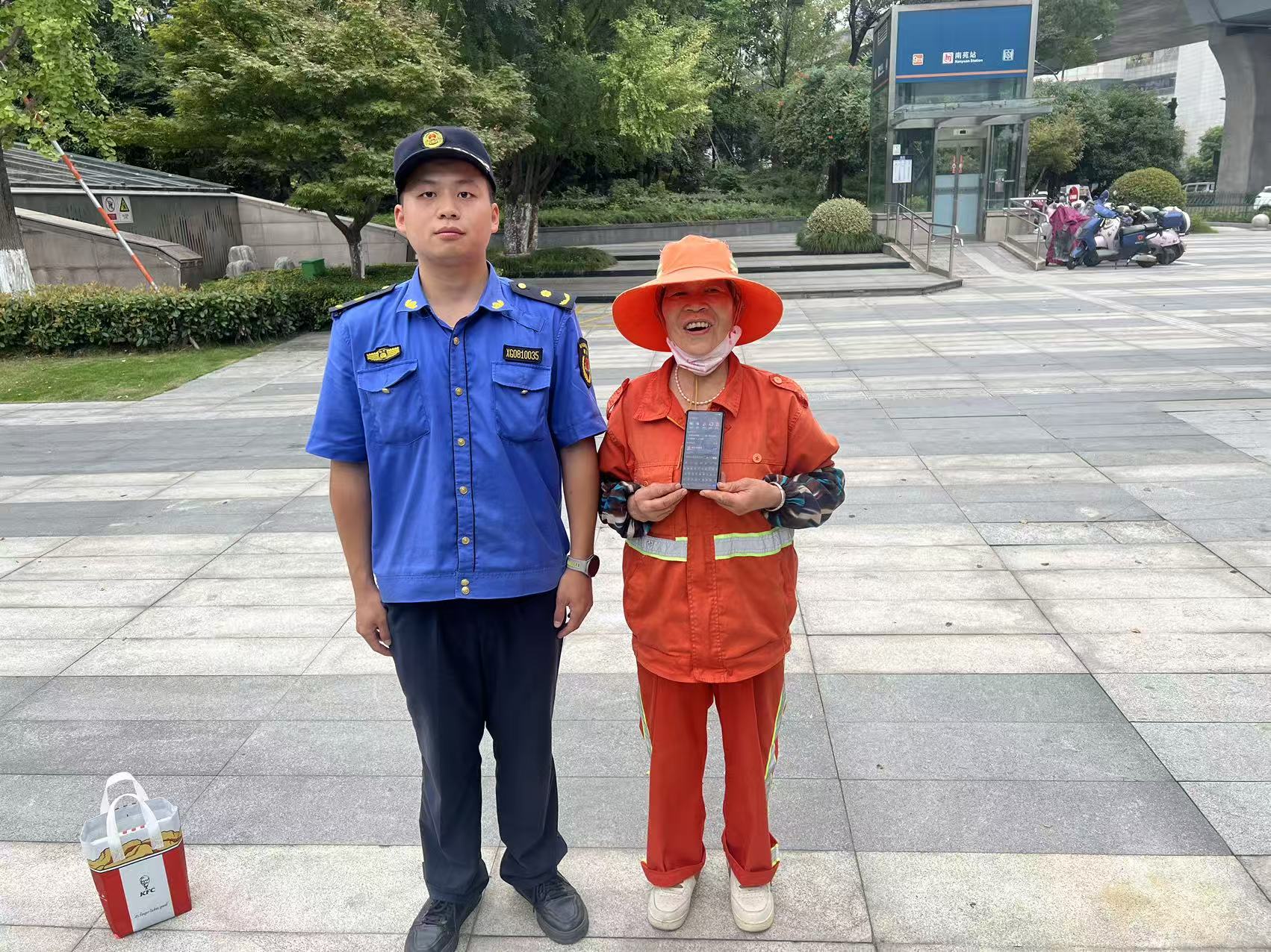 9月29日14:40,浙江民泰公司駐杭州市臨平區(qū)新城市容項目員工李國慶在南苑地鐵站C口巡查時,撿到一部Vivo手機。報告項目負責人后,便在原地邊巡查邊等待失主。