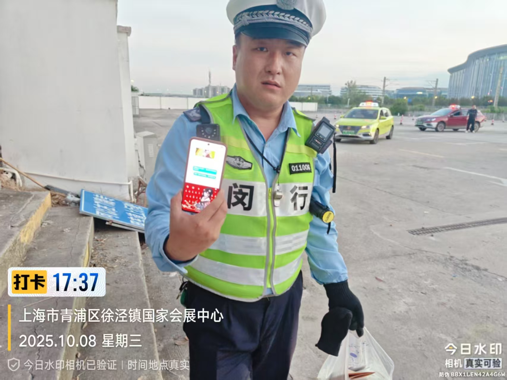 10月8日17:37,宗保公司駐閔行區(qū)華漕護校項目員工劉永立在上海國家會展中心P0進口保障時,撿到一部華為P50pro手機,詢問周圍路人無人認領(lǐng)后,便將情況報告了項目負責人,并按指示在附近邊值勤邊等待失主。