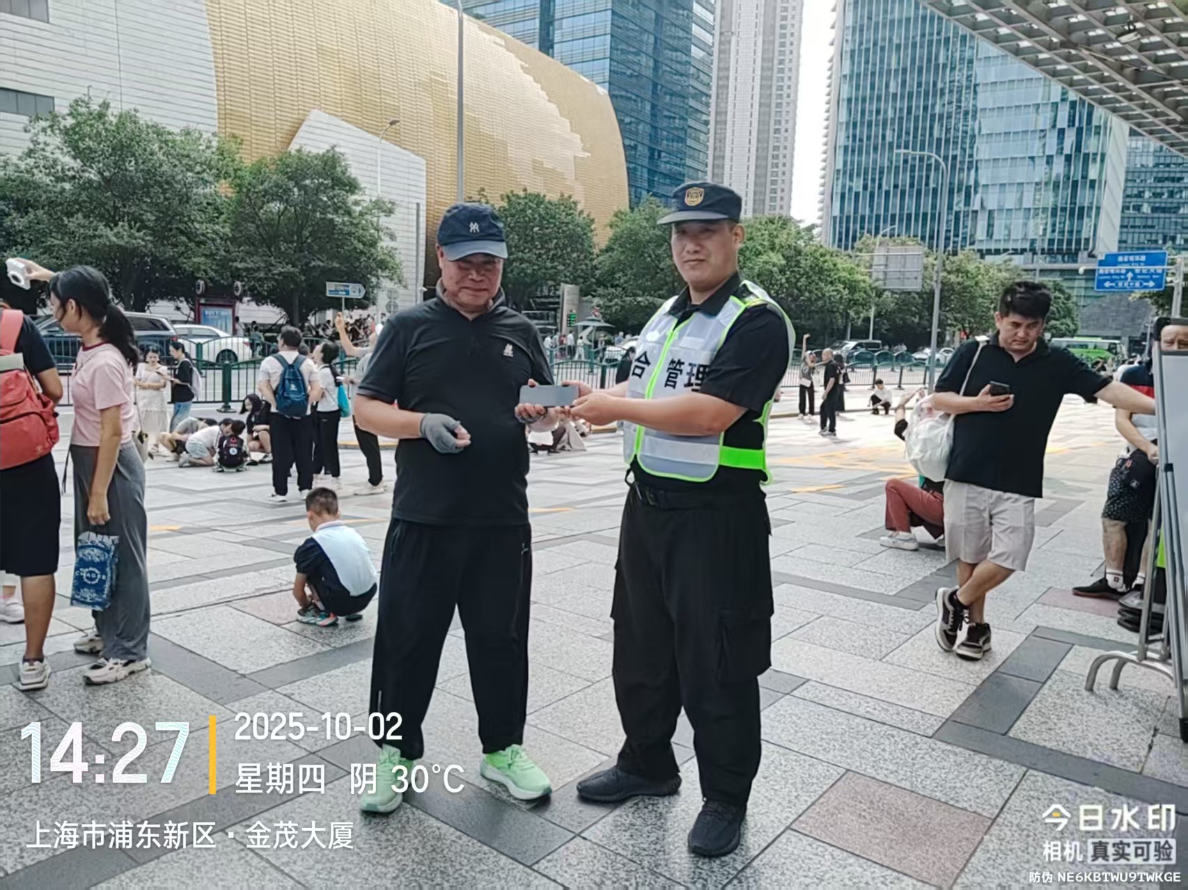 10月13日20:50,宗保公司駐浦東新區(qū)陸家嘴綜合管理項目員工文亞樂在金茂大廈附近巡邏時,撿到一部魅族手機。由于手機設(shè)有鎖屏密碼,一時無法聯(lián)系失主,文亞樂便留在原地邊巡邏邊等待失主。