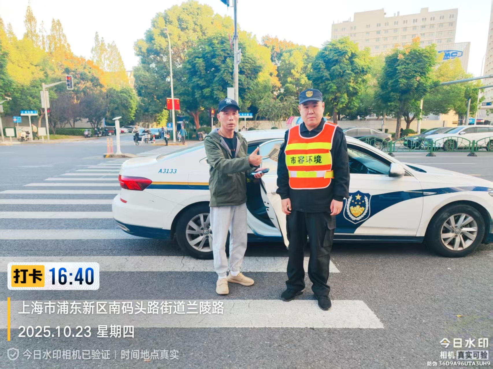 10月28日7:20,宗保公司駐浦東新區(qū)南碼頭市容項目員工桑飛巡邏至浦三路679號時,撿到一個黑色錢包,內(nèi)有身份證、社??ā⑷舾涩F(xiàn)金等。桑飛將情況報告項目負責(zé)人后,便在原地等待失主。