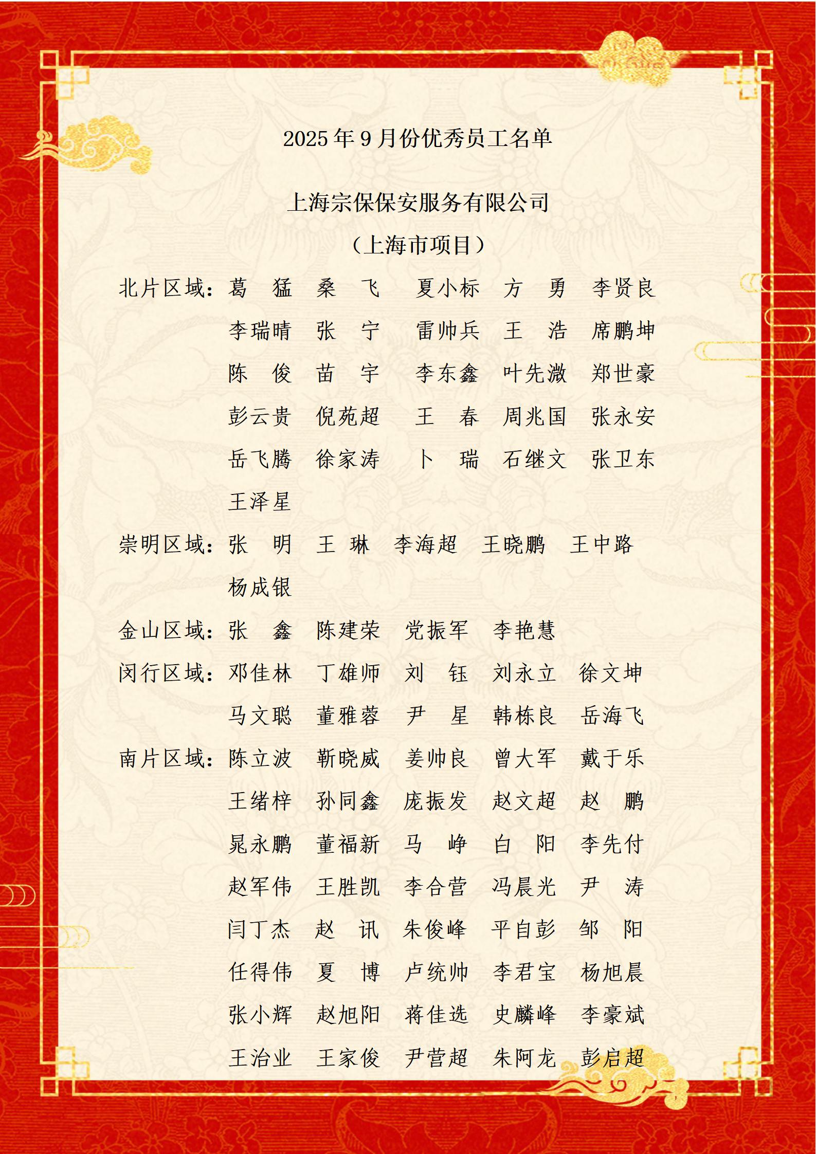 9月份,公司廣大員工根據(jù)甲方的任務(wù)要求,按照公司的部署安排,認(rèn)真踐行公司“規(guī)范經(jīng)營(yíng) 誠(chéng)信為本 服務(wù)至上”的發(fā)展理念,助力完成了杭州市2025禪茶徑山越野賽等多項(xiàng)大型活動(dòng)安保任務(wù),順利推進(jìn)無(wú)人機(jī)飛手駕照培訓(xùn),全力配合甲方做好了城市管理輔助、治安巡邏聯(lián)防、物業(yè)服務(wù)保障、生態(tài)環(huán)境保護(hù)、高鐵線路巡防等工作。期間,涌現(xiàn)出了一批盡心履責(zé)、崗位建功、拾金不昧、熱心助人的優(yōu)秀員工和先進(jìn)典型。