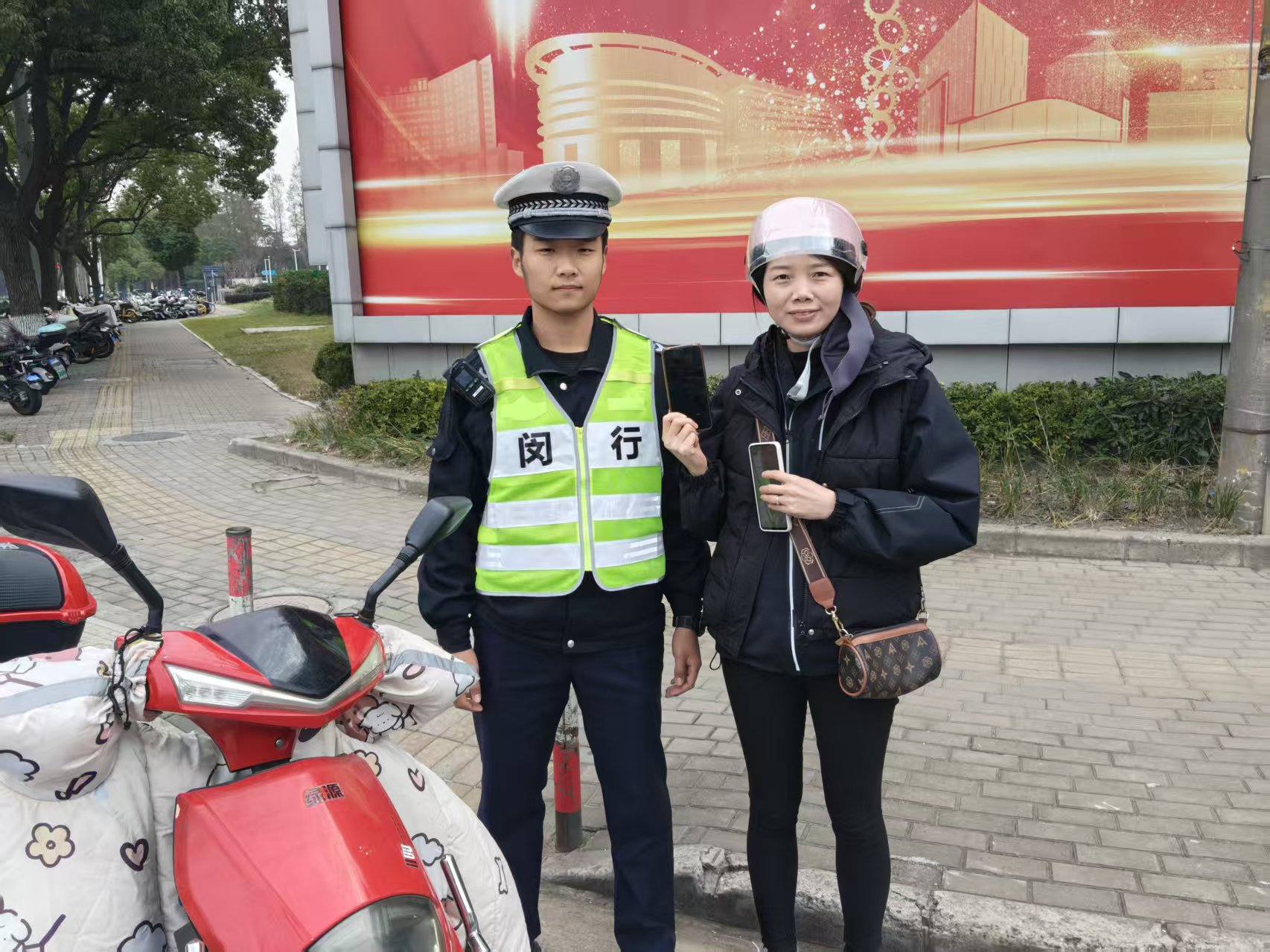 不一會兒,一位身穿黑色外套的女士急匆匆地趕到約定地點。魏碩陽通過女士解鎖手機密碼,確認其是失主后,就把手機歸還給了她。女士拿到手機非常高興,連連向魏碩陽道謝。