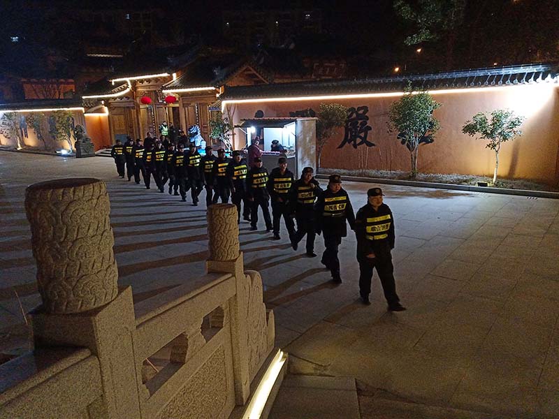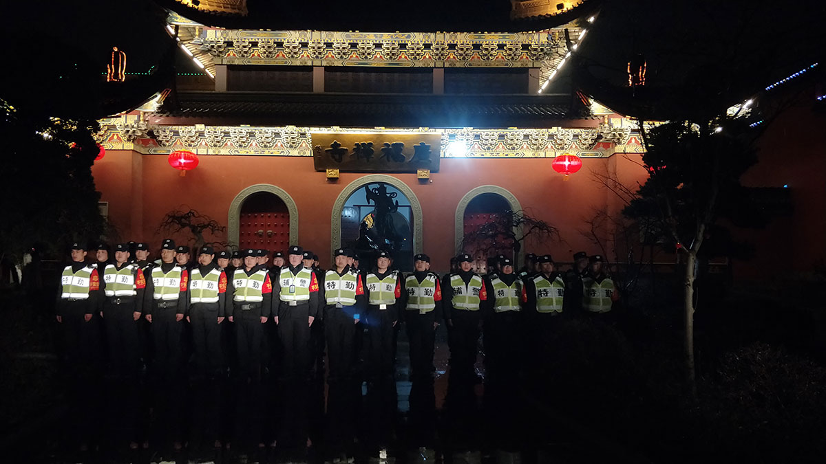 哪里需要保障安全,哪里就有宗保人的身影。春節(jié)除夕夜,宗保公司出動特保隊員1100多人次,在公安民警和甲方領導的帶領下,圓滿完成了21個寺廟(庵)的秩序維護保障臨保任務。