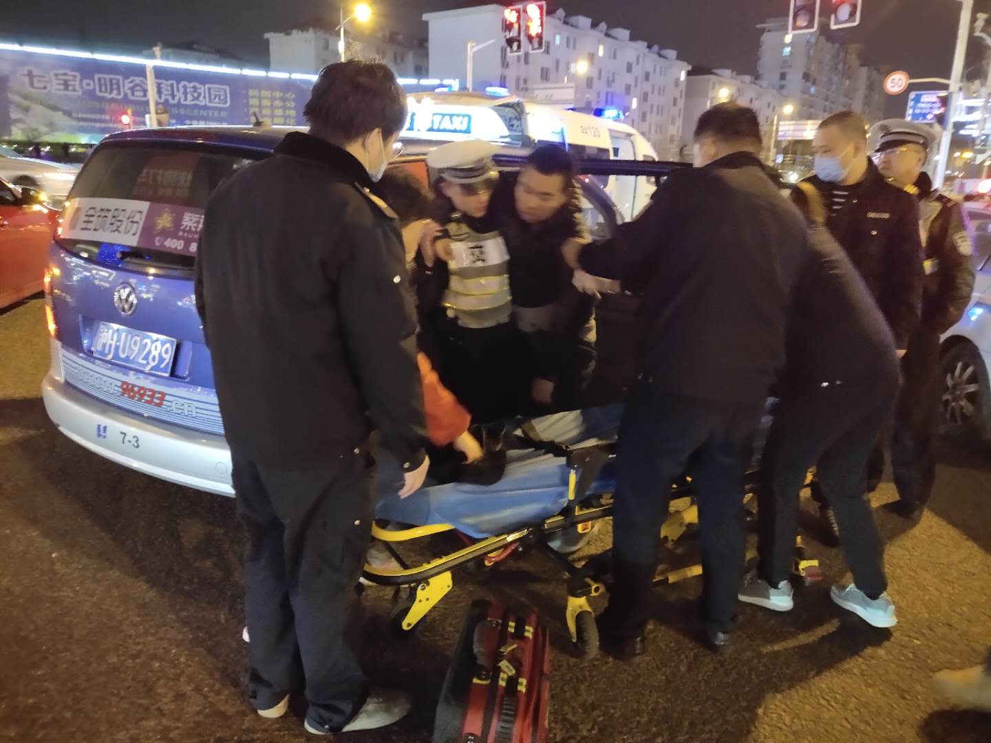 當(dāng)日20:00左右,當(dāng)宗保隊(duì)員馮焱和但漢峰巡邏至七莘路漕寶路路口時(shí),發(fā)現(xiàn)有一位路人躺在路邊,渾身抽搐,疑似癲癇,該病人家屬站在旁邊,束手無策。小馮和小但立即上前幫忙。但漢峰略懂癲癇癥急救常識,先將病人側(cè)身,解開病人上衣扣子,撬開嘴巴,防止咬到舌頭。馮焱立即通知120,并報(bào)警。民警和120先后到達(dá)現(xiàn)場,小馮和小但將病人抬上救護(hù)車,送往醫(yī)院救治。