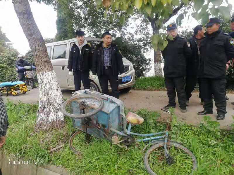 當日12:30分左右,金山衛(wèi)五違組八字村巡查員趙福如在轄區(qū)內(nèi)巡查時,猛聽到車輛撞擊聲,聞聲而去,看到一位老太太被撞倒農(nóng)田里,頭部流血不止。趙福如先后拔120急救電話和110報警,又通知巡查組長張建華。組長帶著其他隊員趕到現(xiàn)場,實施簡單救援,待救護車到達后,一起協(xié)助救護人員,幫忙處理傷情并將傷者抬上救護車后,又向交警提供現(xiàn)場情況。