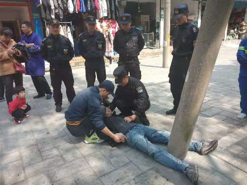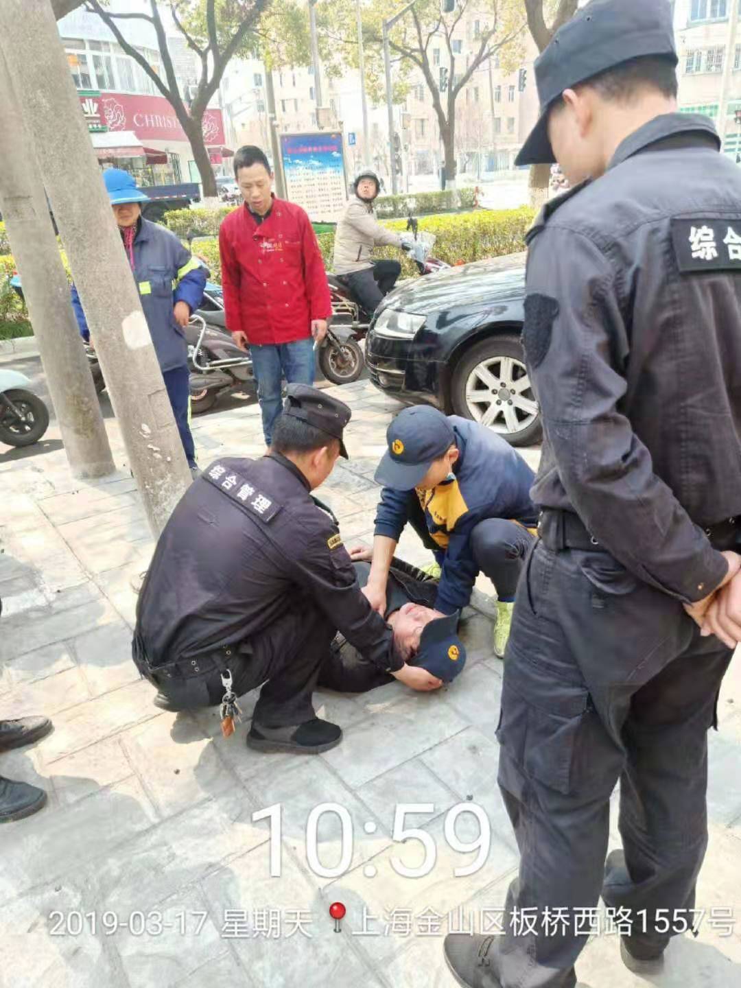 2019年3月17日,面對一名突然暈倒的男子,宗保駐金山市容項目的特保們,給出了令人贊嘆的答案。
