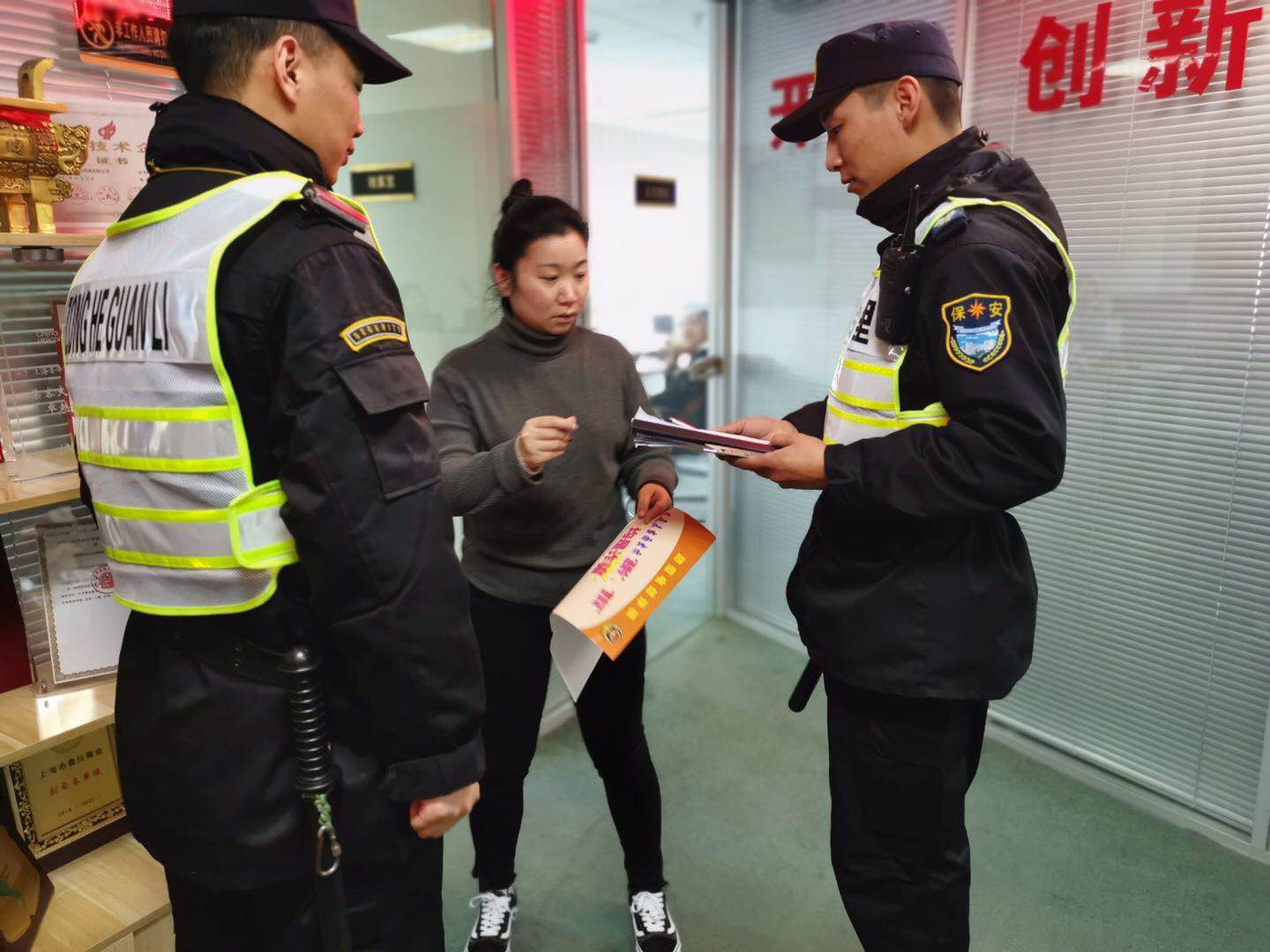 按照甲方領(lǐng)導(dǎo)安排,宗保公司駐陸家嘴項(xiàng)目配合派出所對(duì)管轄區(qū)域開(kāi)展宣傳。特保隊(duì)員跑樓宇、進(jìn)商圈,對(duì)商業(yè)城區(qū)域數(shù)十棟大樓、數(shù)百家商家進(jìn)行了逐戶宣傳宣講。特保隊(duì)員通過(guò)派發(fā)宣傳資料、現(xiàn)場(chǎng)講解的方式,向各商戶講述了電信詐騙的種類、慣用手段及防范常識(shí),以及“電信詐騙識(shí)騙防騙技巧”、“電信詐騙常用語(yǔ)”、“電信詐騙常用行為”,提醒廣大市民不要輕易將個(gè)人資料、卡號(hào)、存款、密碼等信息告知他人。如遇可疑情況,要多和家人溝通商議或及時(shí)報(bào)警,以免遭到不法侵害。