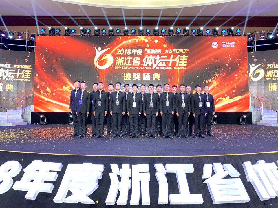 2019年4月4日晚,2018年度浙江“體壇十佳”頒獎盛典在杭州未來科技城國際會議中心盛大舉行,浙江民泰保安公司圓滿完成此次活動的現(xiàn)場安保工作。