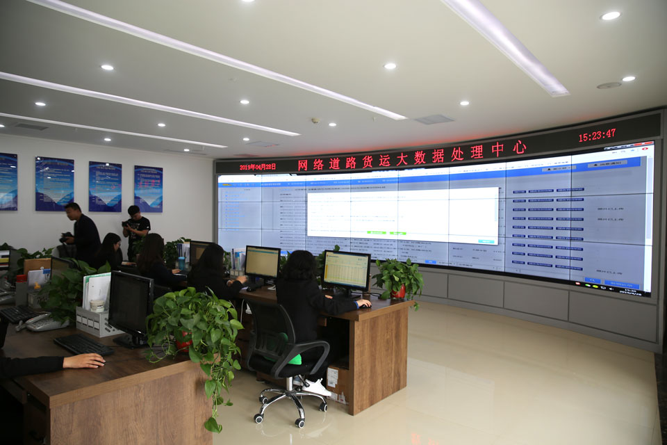 當(dāng)天下午,宗保公司一行來到位于鄭東新區(qū)智慧島大數(shù)據(jù)試驗區(qū)的脫穎實業(yè)公司總部參觀學(xué)習(xí)。在程舒秋總經(jīng)理的陪同下,參觀人員在調(diào)度大廳現(xiàn)場觀摩平臺上貨車運行軌跡、司機實時視頻、訂單智能處理等場景,感受無車承運人的巨大魅力。