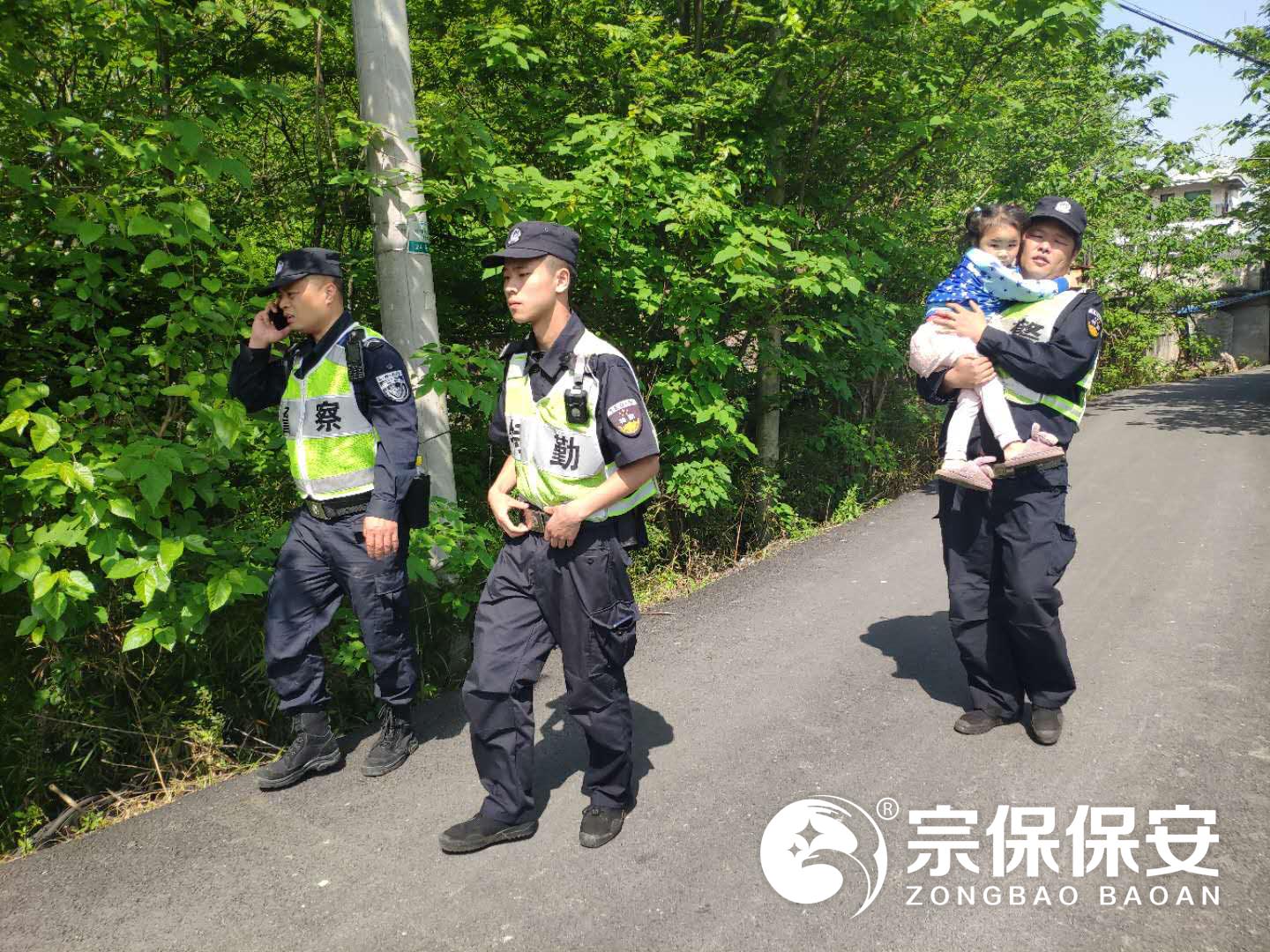 2019年5月2日,浙江民泰閑林輔警項目特保隊員在巡邏期間,遇到迷路小孩,將其安全送回家。