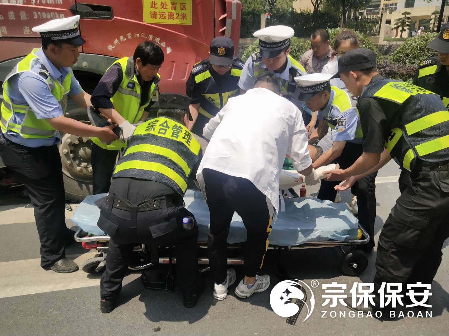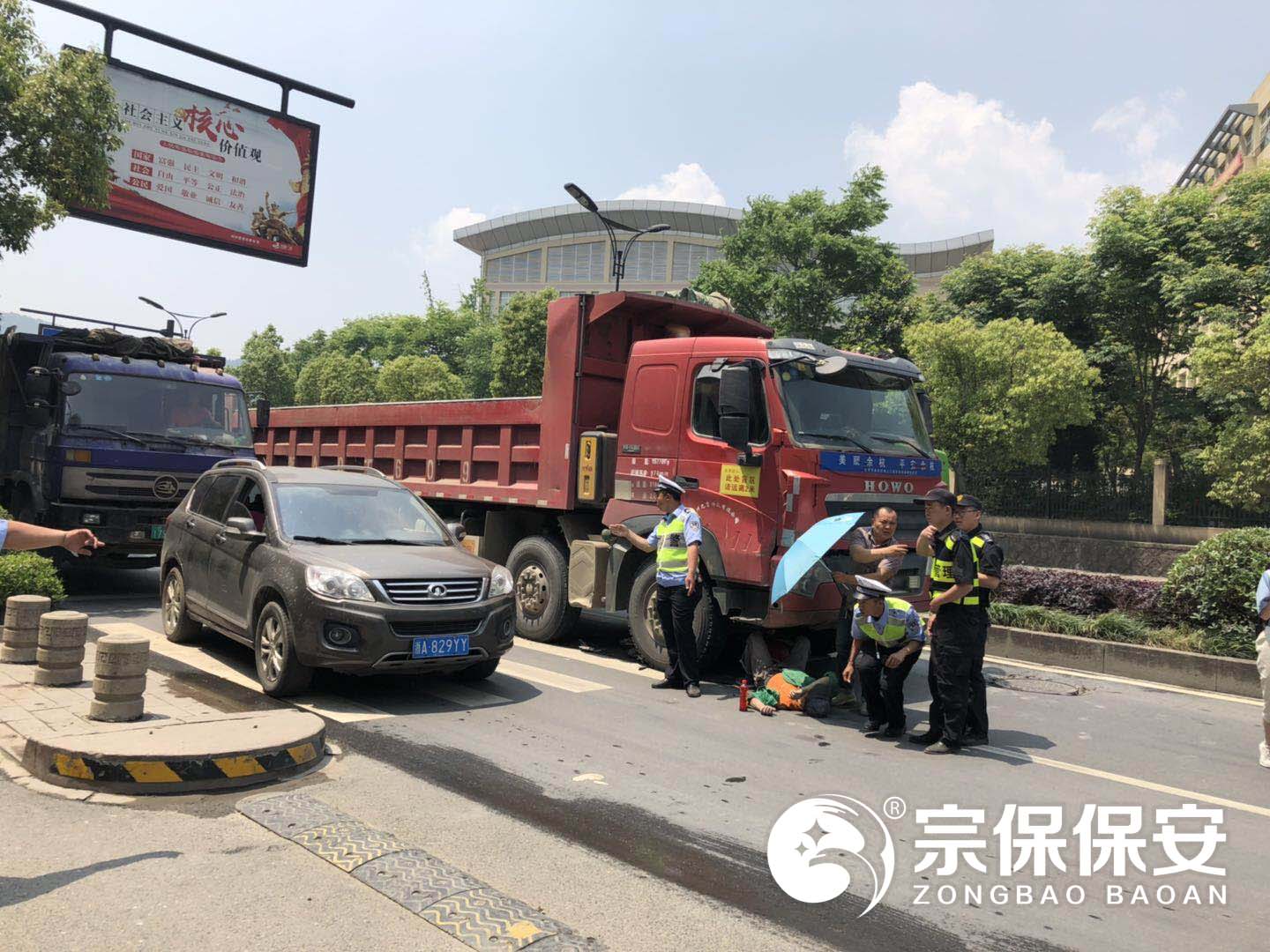 當(dāng)日上午10:50分左右,民泰隊(duì)員巡查至余杭區(qū)閑林街道閑富北路時(shí),發(fā)現(xiàn)前方發(fā)生了一起電動(dòng)車與工程車相撞的交通事故。隊(duì)員們立即向事故現(xiàn)場(chǎng)奔去并報(bào)告上級(jí)請(qǐng)求支援。現(xiàn)場(chǎng)特保隊(duì)員詢問(wèn)傷者傷勢(shì)情況并安撫其情緒,協(xié)助報(bào)警叫救護(hù)車。隨著增援隊(duì)員的趕來(lái),隊(duì)員們分工積極指揮現(xiàn)場(chǎng)交通,維護(hù)現(xiàn)場(chǎng)秩序,避免發(fā)生二次事故。