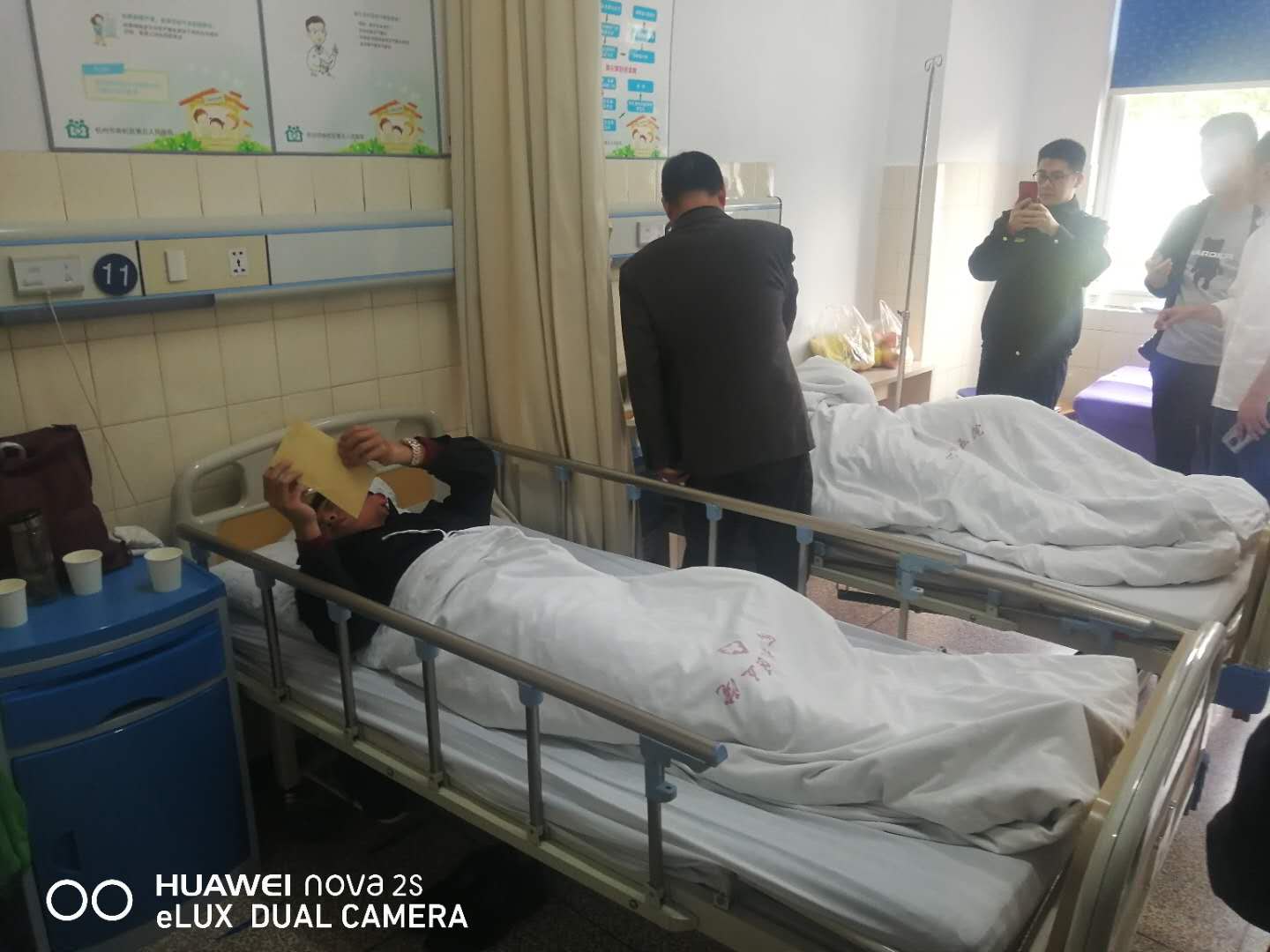 當(dāng)天16:20左右,東湖街道陳主任到醫(yī)院看望受傷隊(duì)員并發(fā)放慰問金每人1000元。