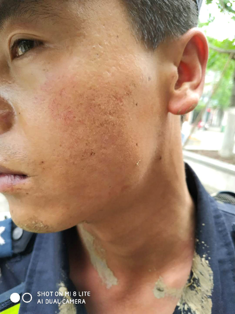 2019年5月17日,浙江民泰駐倉前市容項(xiàng)目呂劍強(qiáng)在勸導(dǎo)跨門經(jīng)營的過程中,遇到店家暴力襲擊,店家用一把蒜苗抽打隊(duì)員臉部。