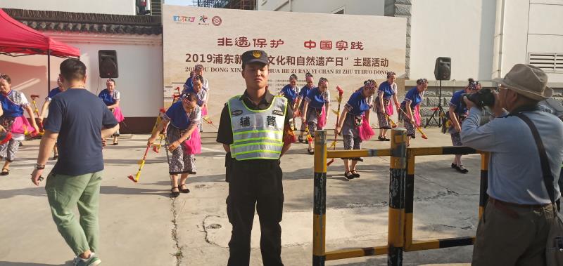 2019年6月5日,“非遺保護(hù) 中國(guó)實(shí)踐”——2019浦東新區(qū)“文化和自然遺產(chǎn)日”主題活動(dòng)在周浦鎮(zhèn)文化服務(wù)中心舉行。薈萃了非遺項(xiàng)目的民俗行街表演吸引了眾多市民和游客的駐足觀看。宗保公司在派出所的指導(dǎo)下,負(fù)責(zé)活動(dòng)現(xiàn)場(chǎng)的安保任務(wù)。