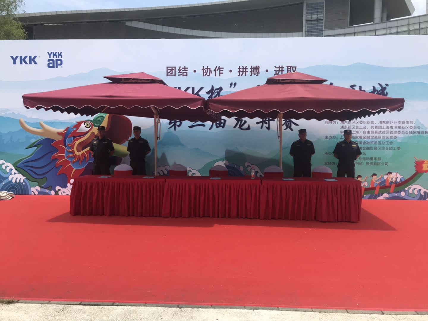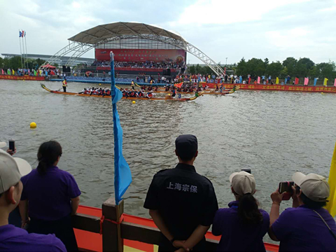 為弘揚中華民族悠久歷史文化,豐富陸家嘴金融城白領(lǐng)業(yè)余文化生活,6月2日下午,2019年“YKK杯”第三屆陸家嘴金融城龍舟賽在上海浦東張家浜河畔開賽,來自金融城各企業(yè)及團(tuán)體的27支代表隊,300余名運動員參加比賽。宗保公司負(fù)責(zé)賽事現(xiàn)場秩序維護(hù)任務(wù)。