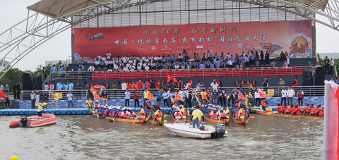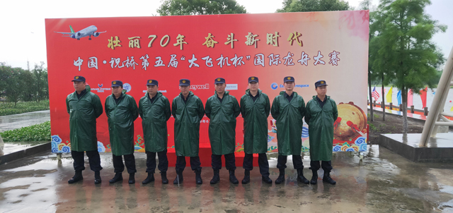 (供稿人:王占偉)鼓槌擂響箭離弦,振臂齊聲斬浪尖。2019年6月6日,端午佳節(jié)即將來臨之際,上海浦東祝橋鎮(zhèn)龍舟基地鼓聲隆隆、龍舟競渡、奮楫爭先——由中國商飛公司與上海市浦東新區(qū)祝橋鎮(zhèn)人民政府聯(lián)合舉辦的“壯麗70年、奮斗新時代”中國祝橋第五屆“大飛機杯”國際龍舟大賽在這里舉行,共18支隊伍參加比賽。
