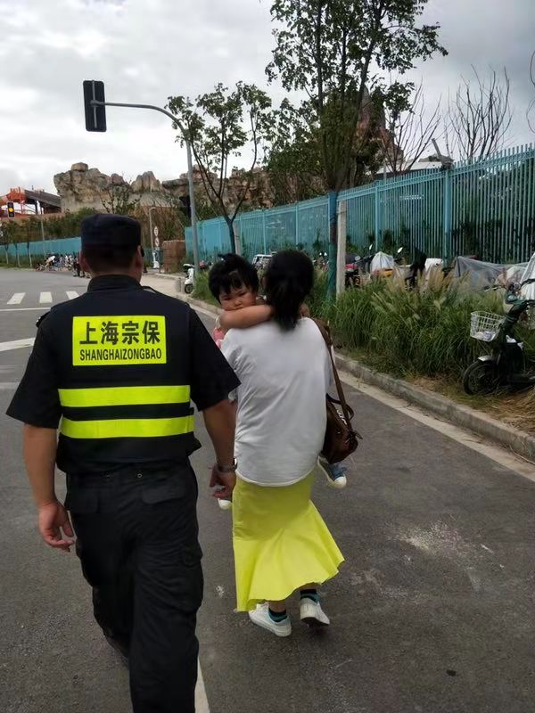 當(dāng)天13:30,該女士帶著女兒來(lái)到上海海昌海洋公園游玩,一不留神與女兒走散,當(dāng)時(shí)客流量較大,尋找非常困難。該女士一下子慌了神,急得眼淚都要出來(lái)了,當(dāng)看到參與海昌公園大客流保障的宗保公司保安隊(duì)員陳云成、謝剛巡邏時(shí),就急忙向他們說(shuō)明情況,尋求幫助。