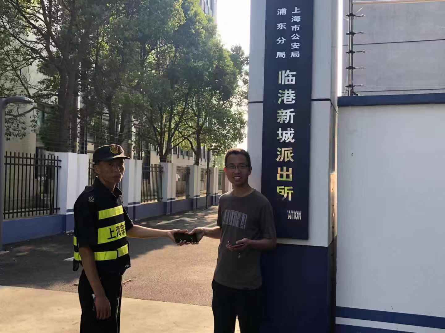 10月2日20:07,陸家嘴濱江區(qū)域值勤隊員朱永強在巡邏時撿到手機一部,值班民警審核后交于失主。