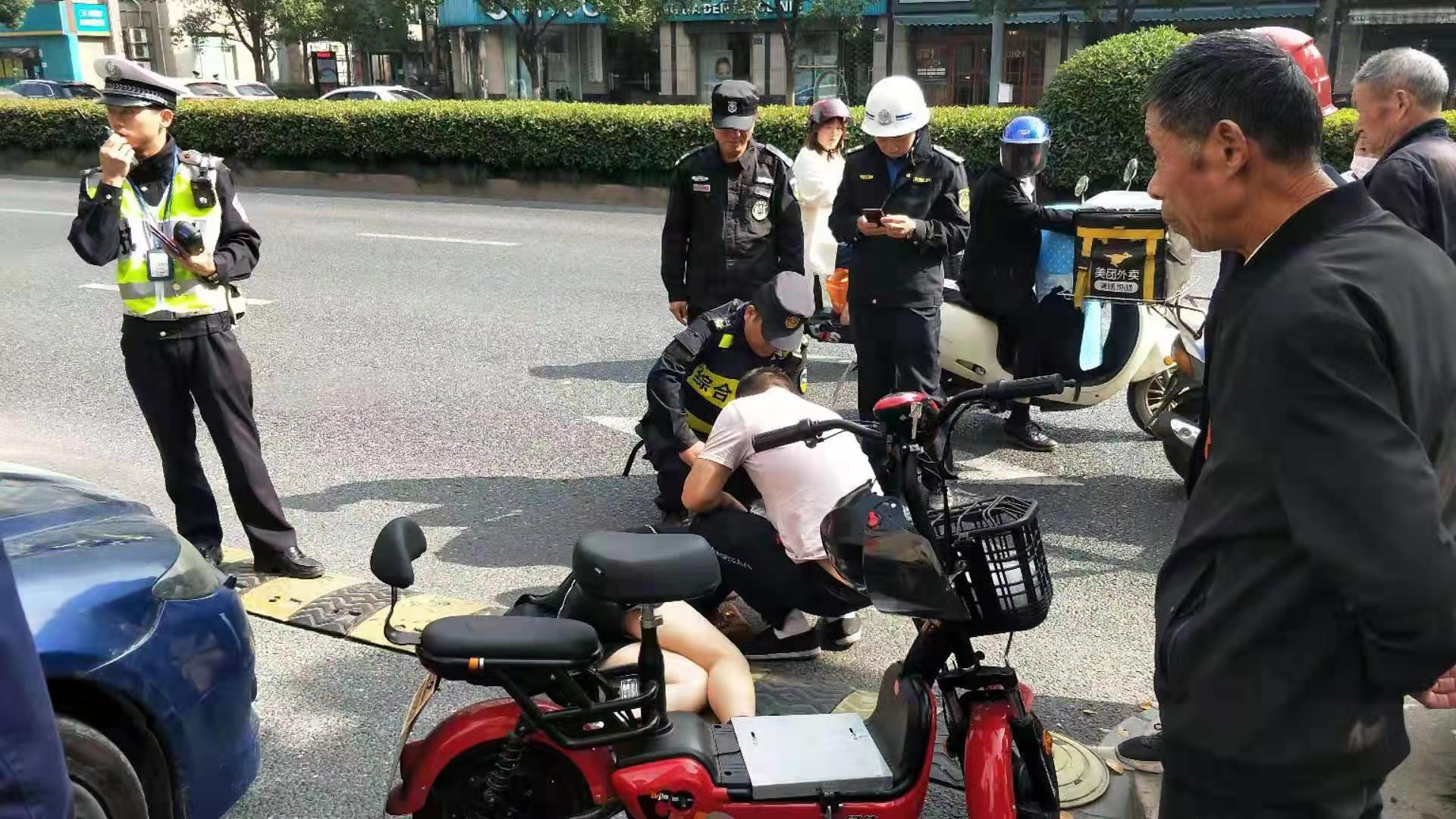 10月24號(hào)上午10點(diǎn)左右,民泰保安駐杭州臨平市容輔助項(xiàng)目隊(duì)員張艮振、肖俊,在東湖中路路面巡查時(shí)看到一位女士騎電瓶車與一輛機(jī)動(dòng)車相撞倒地,走近查看發(fā)現(xiàn)這位女士的胳膊受傷嚴(yán)重,兩位隊(duì)員急忙撥打報(bào)警和120急救電話。
