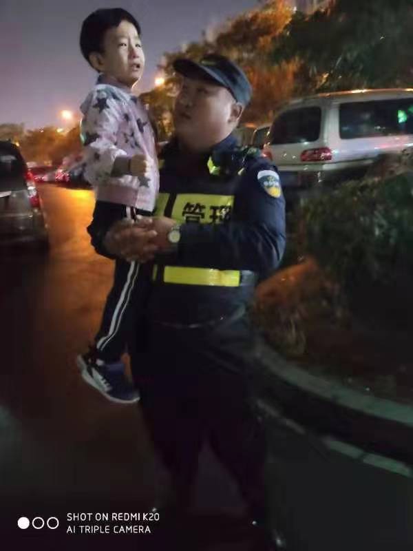10月27號(hào)下午,民泰公司駐余杭開發(fā)區(qū)市容輔助項(xiàng)目隊(duì)員李亞洲、俞建農(nóng)在蘭江菜場周邊巡邏時(shí),發(fā)現(xiàn)一小男孩在停車場哭泣。兩人立即上前詢問,得知小孩和奶奶到超市買東西時(shí)走散了。