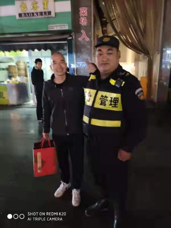 18:10,小孩家人急切切地趕到菜場進(jìn)口接走孩子,一再向兩名隊(duì)員表示感謝。18:30左右,小孩的爸爸又拿兩盒禮品,找到李亞洲和俞建農(nóng)再次感謝,兩位隊(duì)員婉言謝絕了孩子爸爸的禮品,說:“我們是浙江民泰保安公司駐余杭開發(fā)區(qū)市容輔助隊(duì)的隊(duì)員,這是我們應(yīng)該做的,感謝您對(duì)我們工作的信任和支持”。