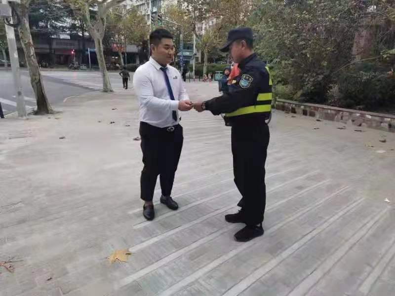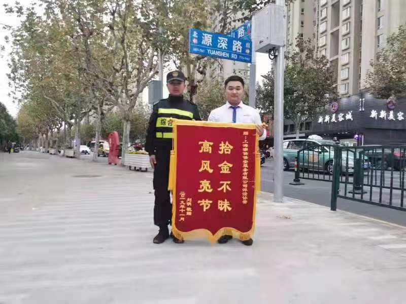 11月12日,在洋涇協(xié)管項目源深路和羽山路崗位,一位男士手捧寫著“拾金不昧,高風(fēng)亮節(jié)”的錦旗,送到公司駐洋涇城管項目隊員倪宏偉的手中,再三表示感謝。